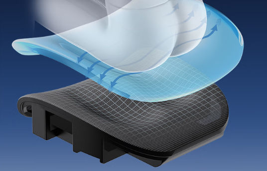 【产品亮点一】它采用空气滑翔悬架+双区浮翼腰托,后仰时腰部不会悬空,而是能随着坐姿自动贴合。椅背的三区轴联动可以根据身体压力自动滑动调整,坐下时,腰托能稳稳托住腰椎L4-L5节段;后仰150°午休时,腰托会同步上移并前推,腰骶部始终有包裹感,久坐也不容易累。