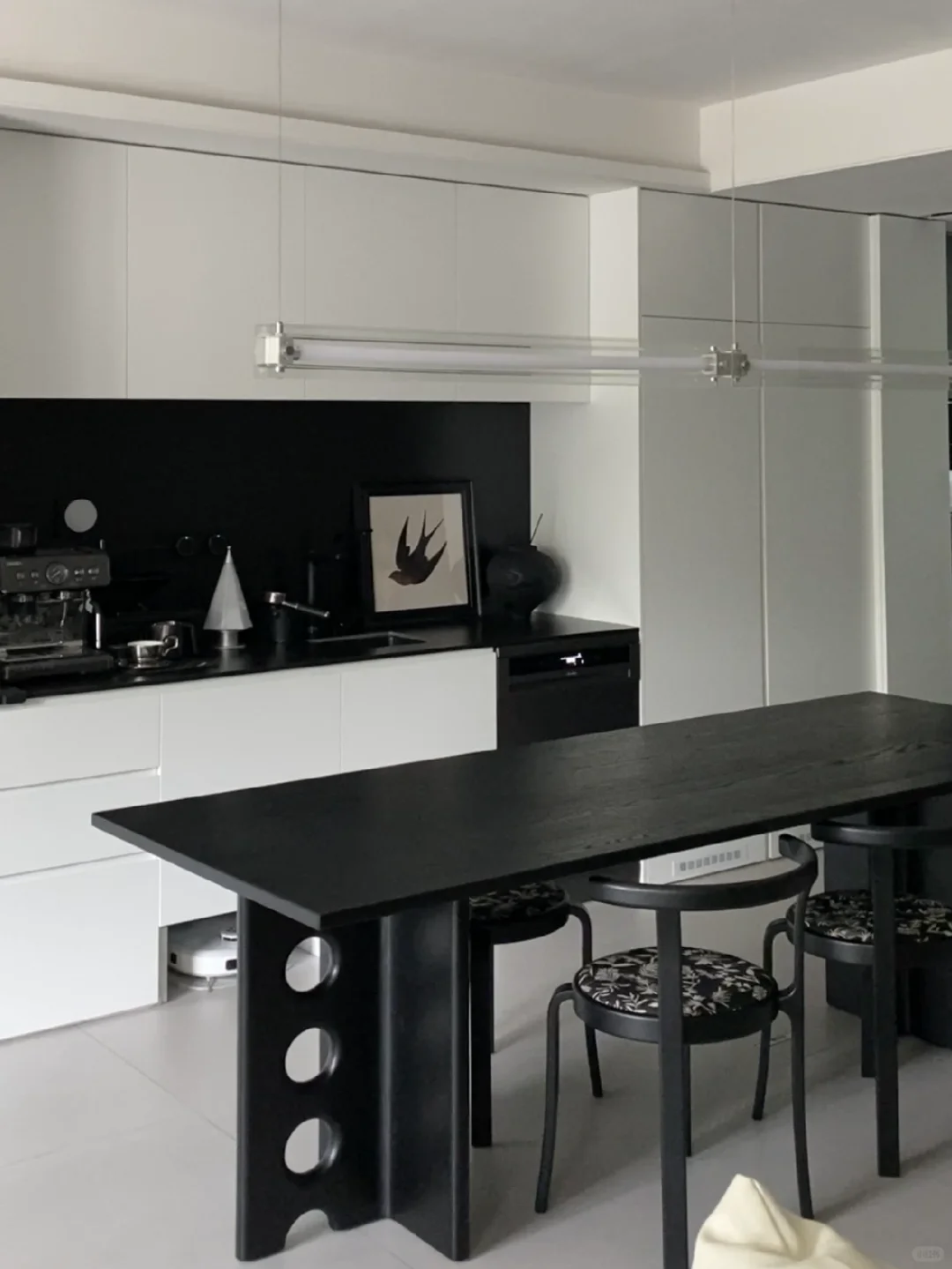 一些越用越喜欢的黑白家居合集。黑色诧寂风餐桌.黑色复古餐椅.黑白餐边柜.黑白落地台灯.地下室.地下室健身房.白色圆弧沙发.极简楼梯.单人沙发.
