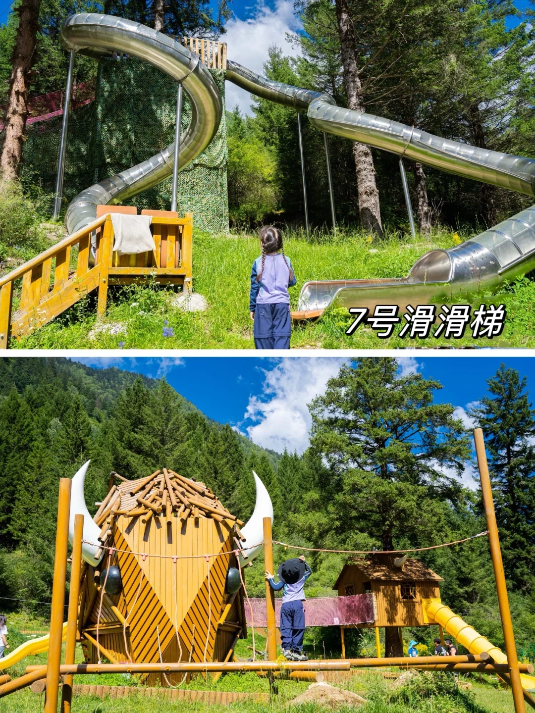 格林7号乐园算是我们九寨之行发现的宝藏地,太适合遛娃了。沿途可以去骑马,也能看看群山环绕,牛羊栖息在山野间的美丽风景~,可以玩场内UTV,攀岩,快跳,树梢漫步,索道等等~和孩子一起在山野间的游乐园肆意玩乐,大人可以玩全地形UTV~在这我们还看到了好多的蘑菇呀~ 简直玩的不想走~