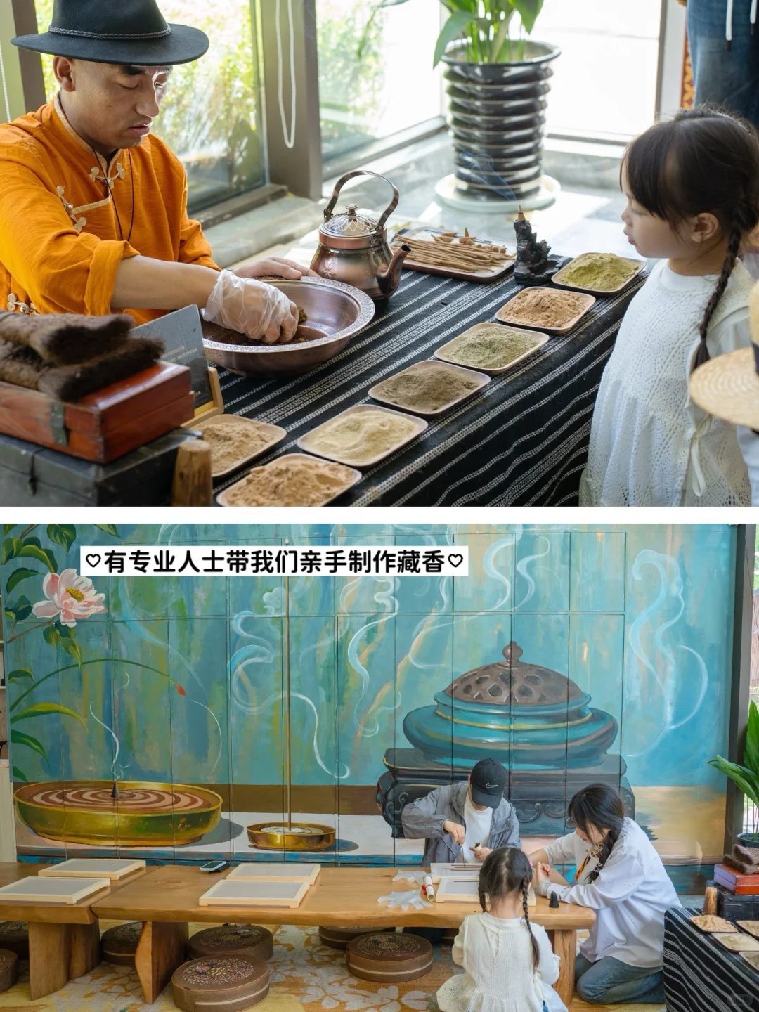 我们带孩子还去了藏羌非遗文化博物馆,了解藏羌民族传统,感受浓厚的藏羌文化底蕴和鲜明的风俗特色。在这里我们还亲手制作了专属我们的藏香,女儿也体验了藏纸的制作,简直就是研学的好地方啊~