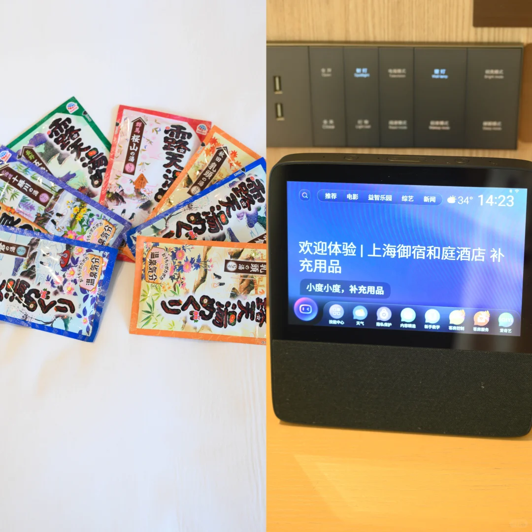 真没想到,在我家附近有一处宁谧之地,“沪”上一房一私汤,一家可以泡私汤的酒店,御宿和庭酒店。从梅川路进口走入御宿和庭酒店,就瞧见一个漂亮的庭院式建筑,由主理人亲自打造的园林盆栽,一步一景,让我们置身于喧嚣之外。 房内全屋智能,一房一私汤,让我和女儿在私密的空间独享泡汤的乐趣。泡池已两次消毒,还有一次性浴缸套,可以放心地泡汤。泡池是用火山岩打造,配以软水及特供的入浴剂。泡完就缓解了疲劳,皮肤还滑滑的,浴室内温莎洗护套装体现了酒店的高品质。mini吧里的软饮和气泡水也是免费的,这不就是我向往的泡汤之地吗? 办理入住后,会给客人午餐、晚餐、品茗折扣券,早餐有元气早餐和西式早餐可选。万一睡过头错过早餐也不用担心,可以换成午餐。住店客人还可参加6项免费DIY手作活动, 有抄经、做风铃等。 2套早餐各有特色,我都很喜欢,服务也很到位。元气早餐含日式蒸蛋、日式烤鱼、日式饭团,还有几款小菜等,很适合夏天食用。西式早餐有火腿片、色拉、可颂面包等,一样很合胃口。 吃好早餐就在茶空间享用双人品茗,望着窗外绿色盎然。品着古树白茶,尝小吃,身心放松下来,真是个休息的好地方。酒店还有大活动室可以供团建等举办活动,屋久岛日本料理也在酒店内,午市定食有特价,性价比很高哦! 御宿和庭酒店地址: 上海市普陀区梅川路1247号3幢