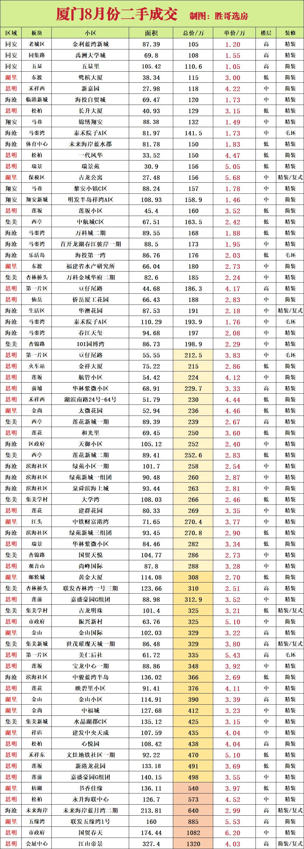 8月成交(最新部分)