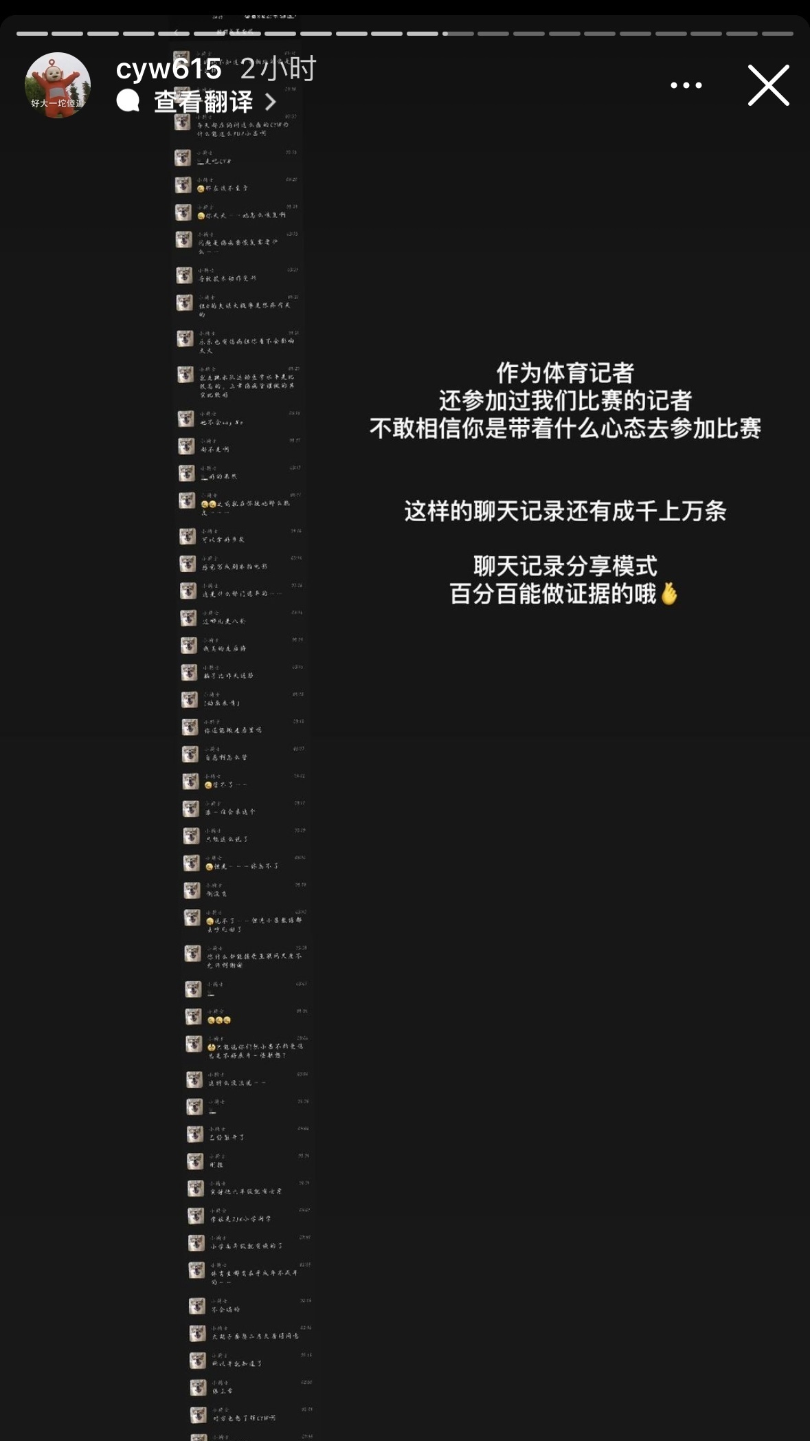 陈艺文ins曝光体育记者对其私生活乃至性取向的恶意造谣攻击,并且一一进行回应辟谣,从被造谣至今已经默默收集到成千上百条聊天记录证据!
