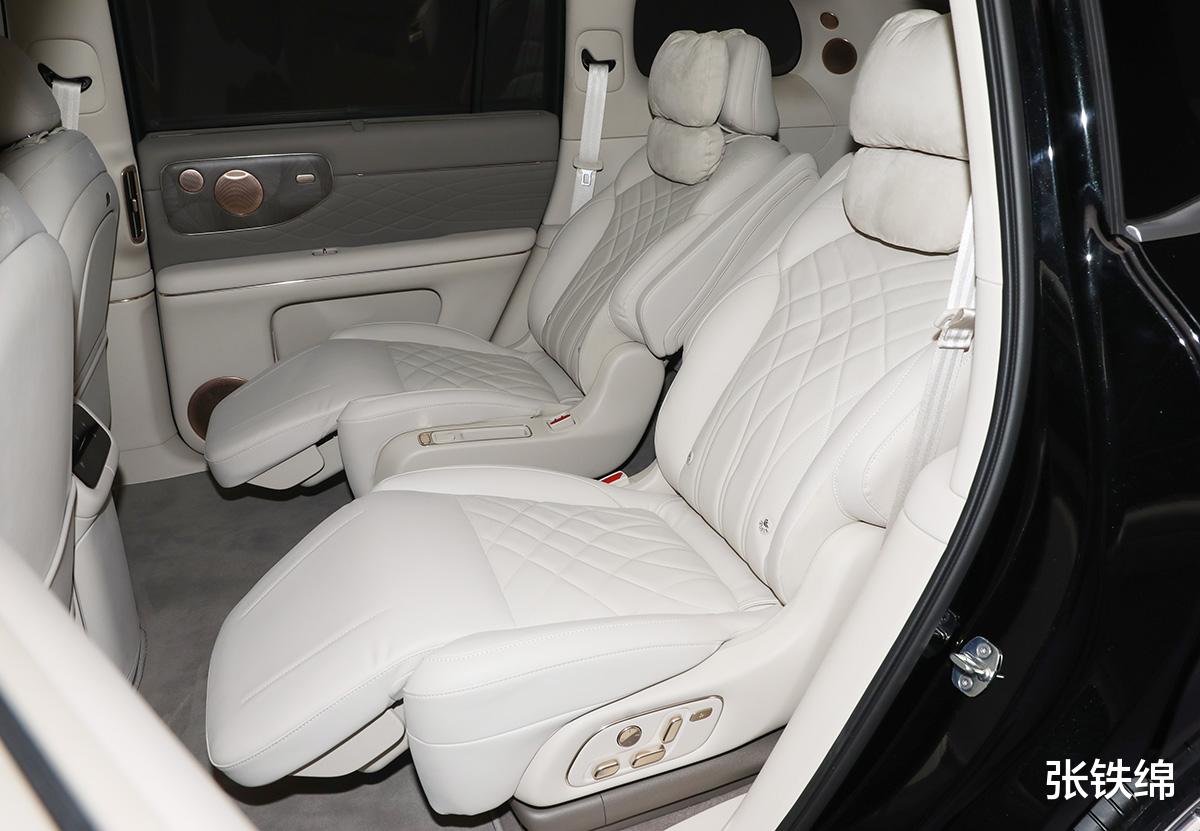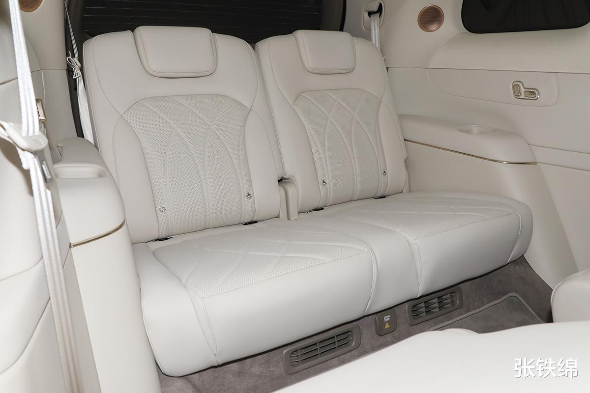 座椅采用的是2+2+2布局,第二排的两个座椅带有电动腿托,其坐垫和靠背也提供了前后电动调节功能,前两排座椅都提供了座椅加热、通风功能,另外后排还提供了车顶吸顶屏、小桌板以及车载冰箱等,有着不错的舒适性。