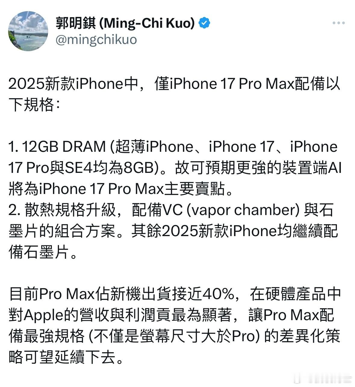 苹果的8G已经顶安卓16G了,如果iPhone17 Pro Max上12G,后台