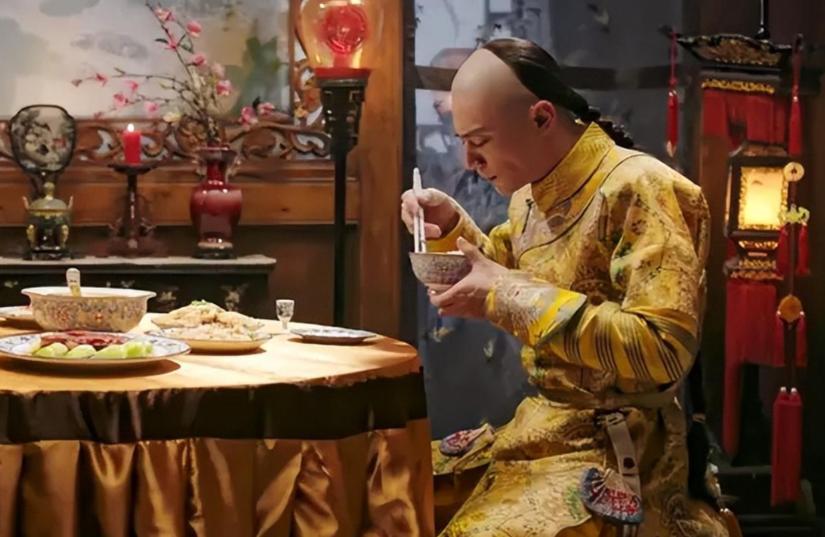 六点,终于能吃早饭了,别以为皇帝早餐是无限制的豪华餐。清宫对皇帝用膳有明确规矩,早膳一般二十多道菜,出于安全考虑,每道菜再好吃,最多只能吃三口,而且皇帝爱吃什么、不爱吃什么,不许让其他人知道,以防有人借机邀宠或在菜上做文章,剩下的菜也不能随意倒掉,需按规矩分配,一部分“赏给后妃、皇子”,一部分“赏给王公大臣”,少量“赐给太监、宫女”。