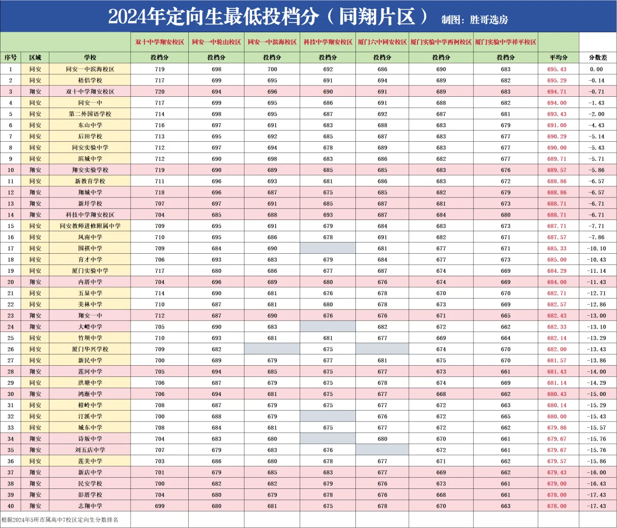 厦门实验中学和科技中学翔安校区有保送自己高中,所以定向生平均分会更吃亏,实际排名会更高。