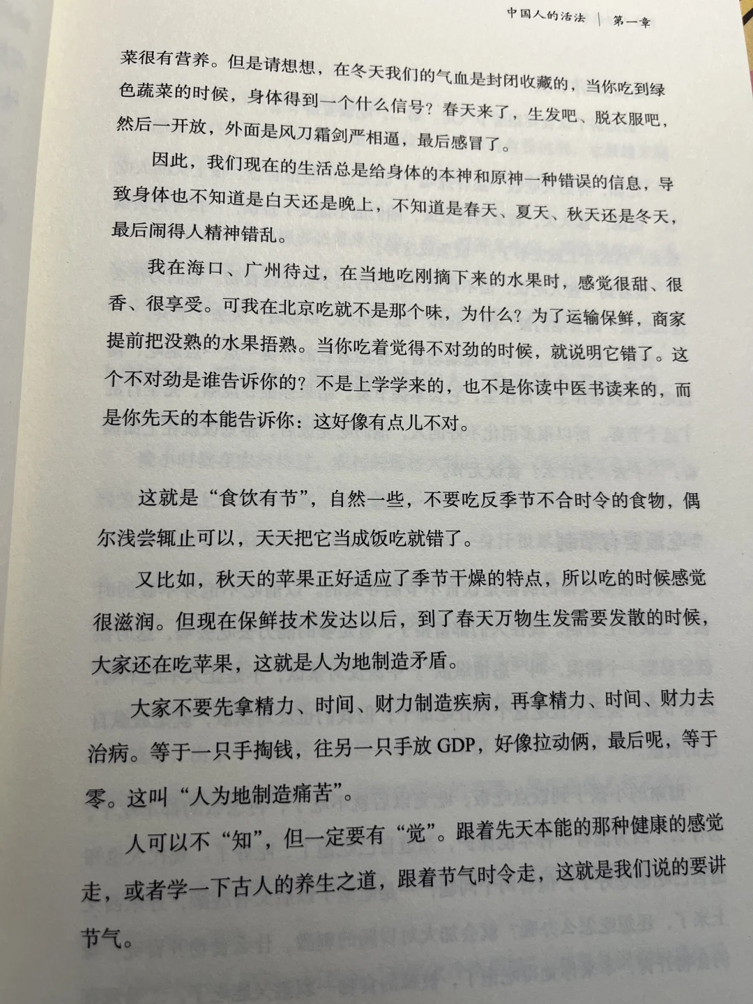 吃什么、喝什么,要跟着节气走。一方水土养一方人,而且春生、夏长、秋收、冬藏,不同季节出产的食物是不一样的。自然出产什么,方圆百里出产什么,到什么节气你吃什么,就会活得很自然。