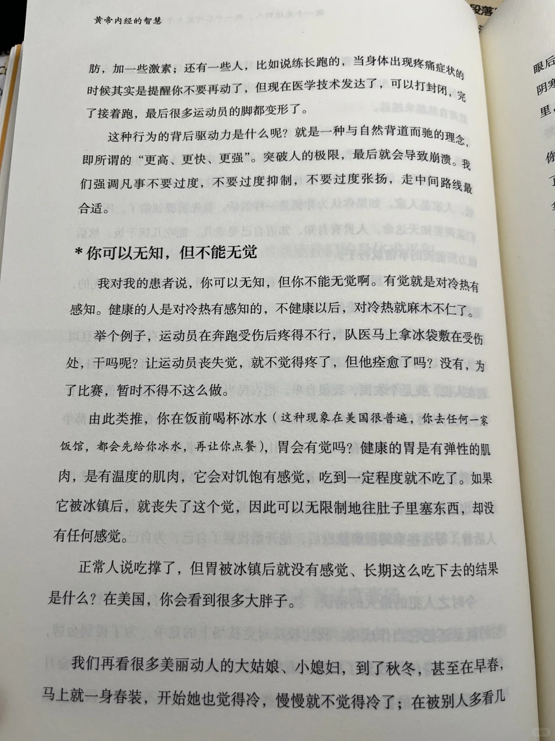 人有一种自我保护的本能,当气血不够的时候,会先保护重要的部位,就是我们的躯干,保证身躯的气血供应,让流向四肢末梢的气血减弱。“身”指躯干,“体”指肢体、末梢。有的人手脚不灵便的时候要去健身房锻炼,强迫自己把气血从躯干分流到四肢,供应心脑的气血就不够了。所以,现在的很多人不是动作皆衰,而是猝死。中国人传统的健身方式,不是在跑步机上运动,而是站桩——站得像桩子一样,手脚都不动,哪儿动?所有的肠胃开始蠕动,这叫“健身”。