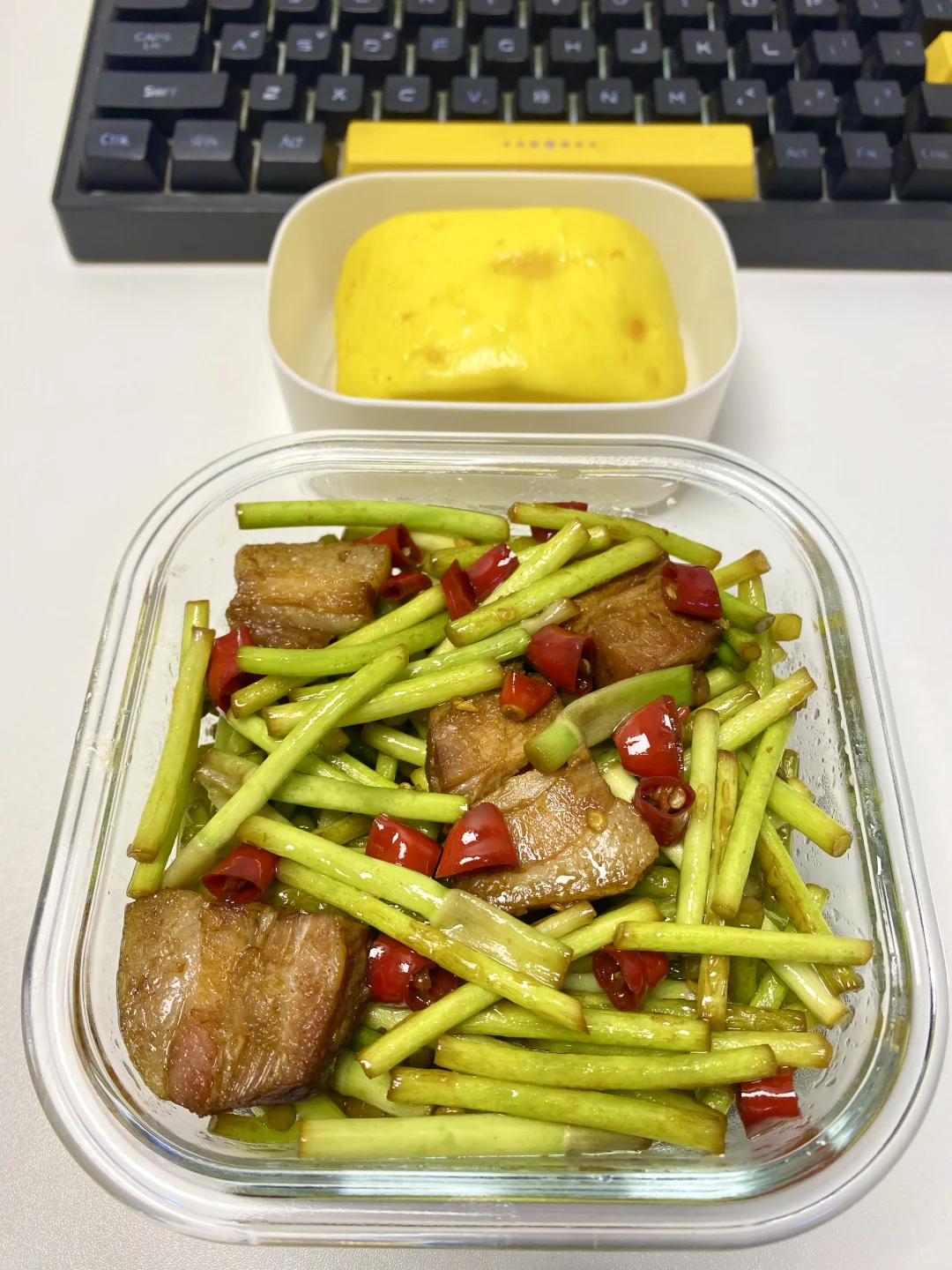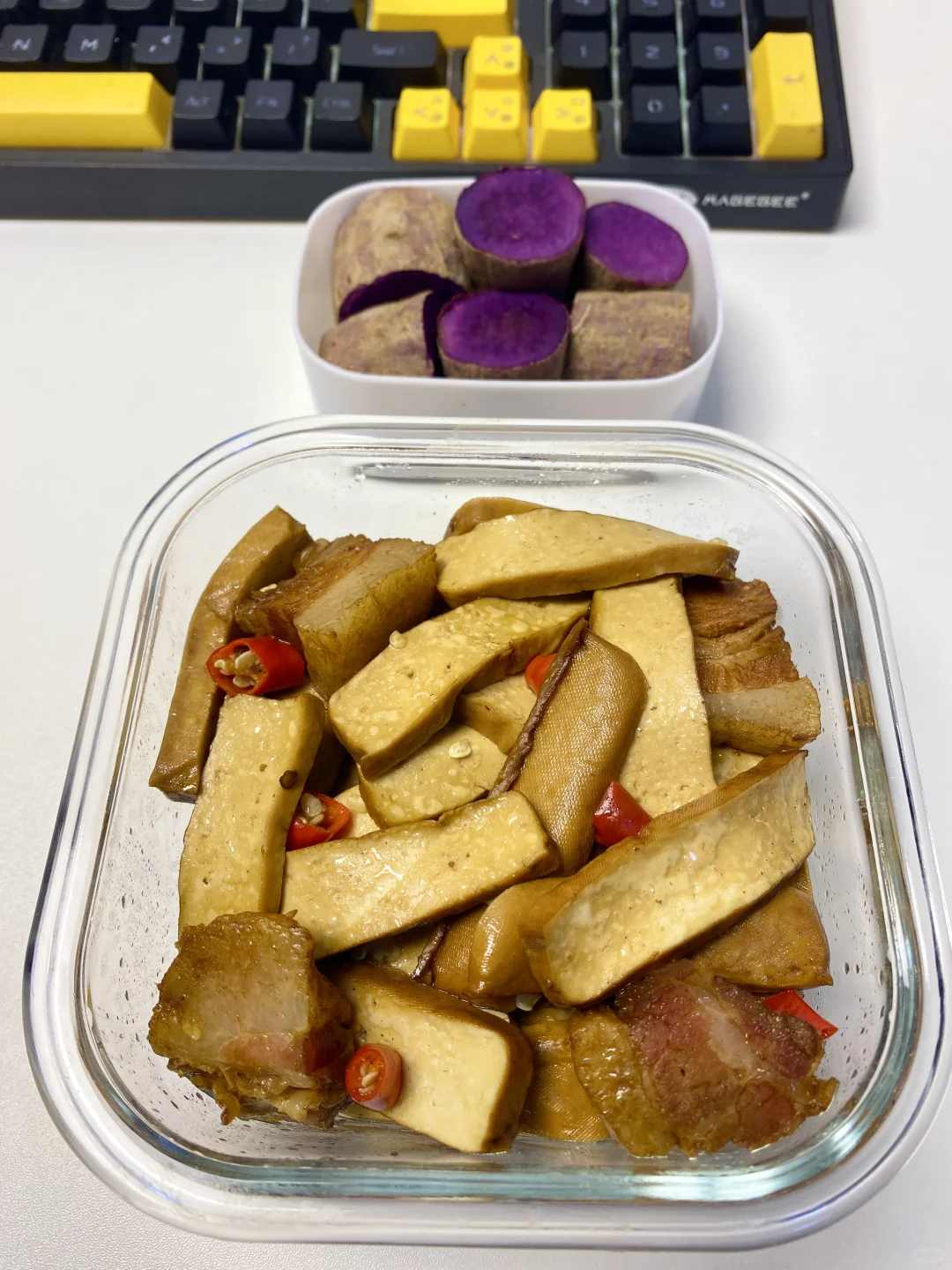 确实像[doge] 1⃣️早:鸡蛋,紫薯、燕麦(2💰) 2⃣️中:蒜苔炒肉、馒头(3.8💰) 3⃣️晚:香干炒肉、紫薯(4.2💰) 4️⃣水果:奇异果(0.7💰) 猪肉菜市场买的约3💰 合计:10.7💰