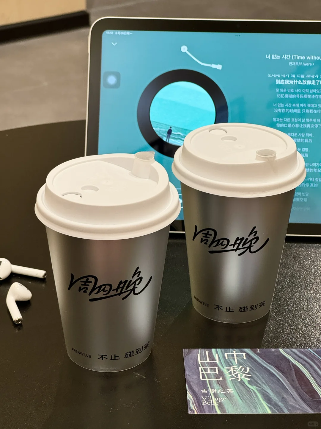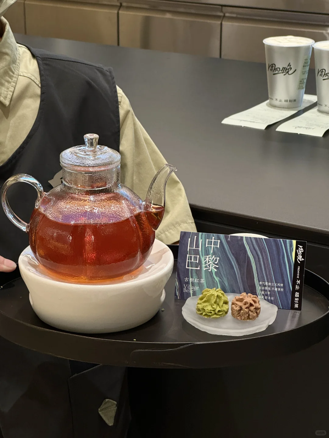 在宁波也喝到了杭州特产!是我敲爱❤️的工夫茶🫖高级的小银杯🩶点了“十六”七窨栀香绿茶茶底🍵➕牛奶🥛花香茶香回甘香甜 推荐少糖噢~ ✔️山中巴黎 和小伙伴选了热饮 现场冲泡的红茶一口下去满嘴茶叶芬芳~搭配小饼干好chill 也可以选择外带铝罐瓶装!尊嘟好好看啊!