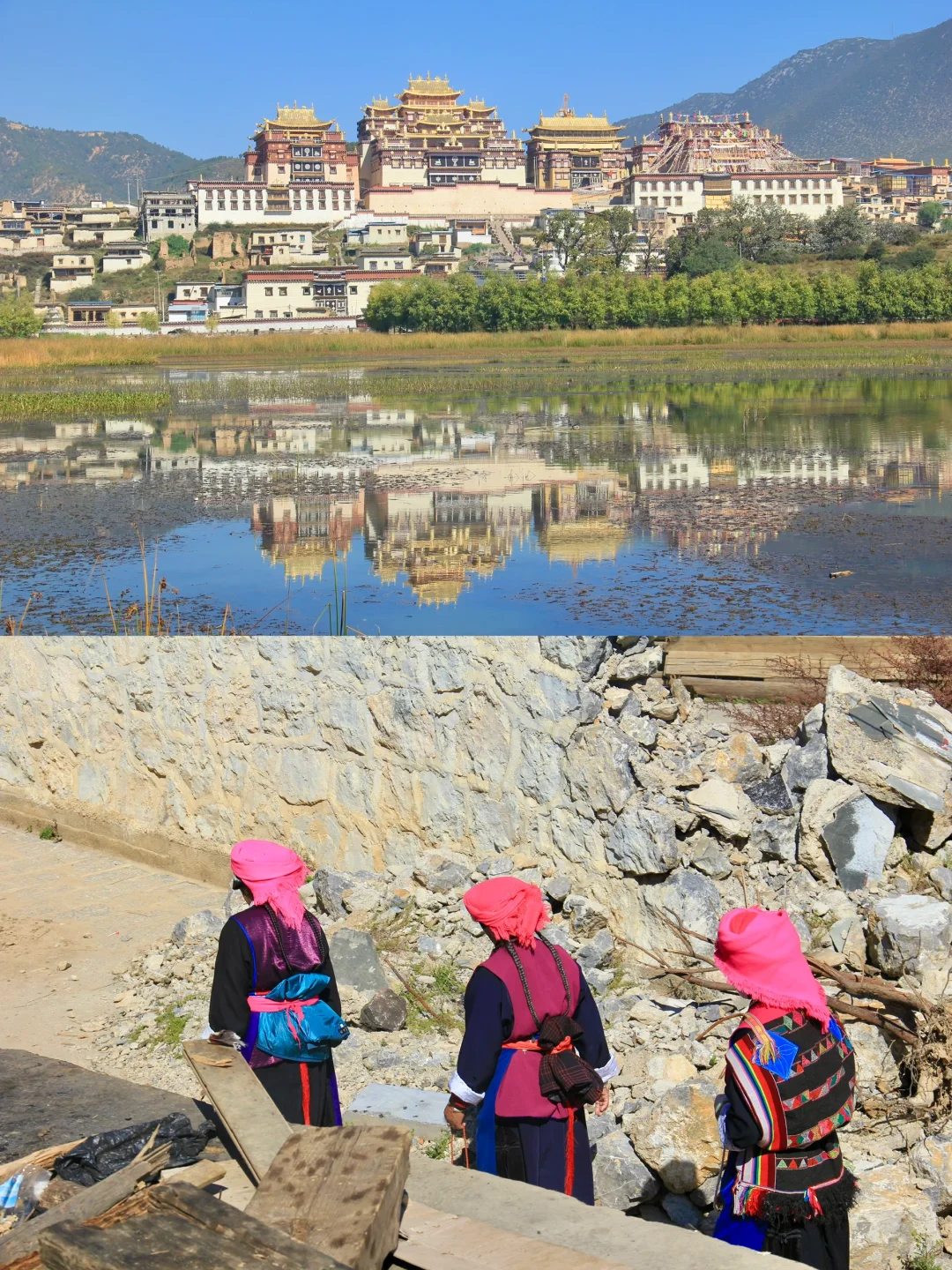 3️⃣松赞林寺:素有“小布达拉宫”之称,秋天的寺庙在蓝天白云和金黄树叶的映衬下,更显庄严神圣。在这里,你可以深刻领略藏传佛教的独特魅力,感悟那份来自灵魂深处的宁静与庄严。