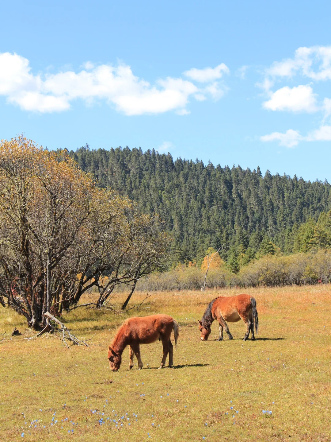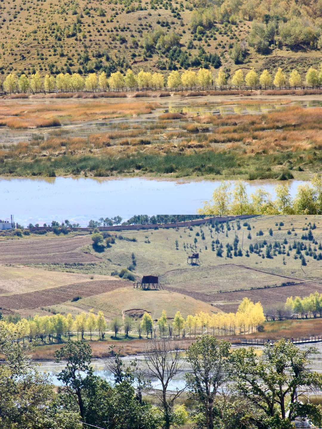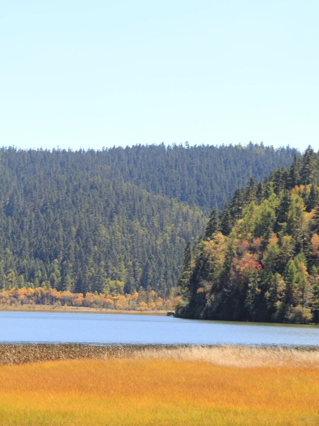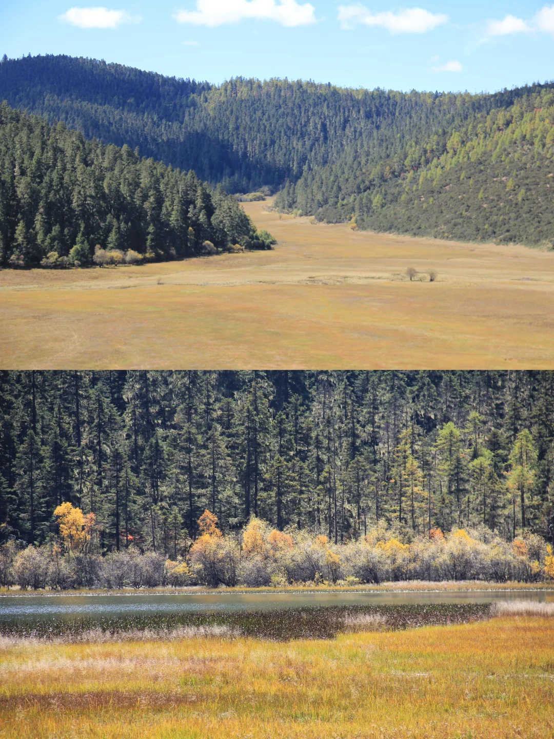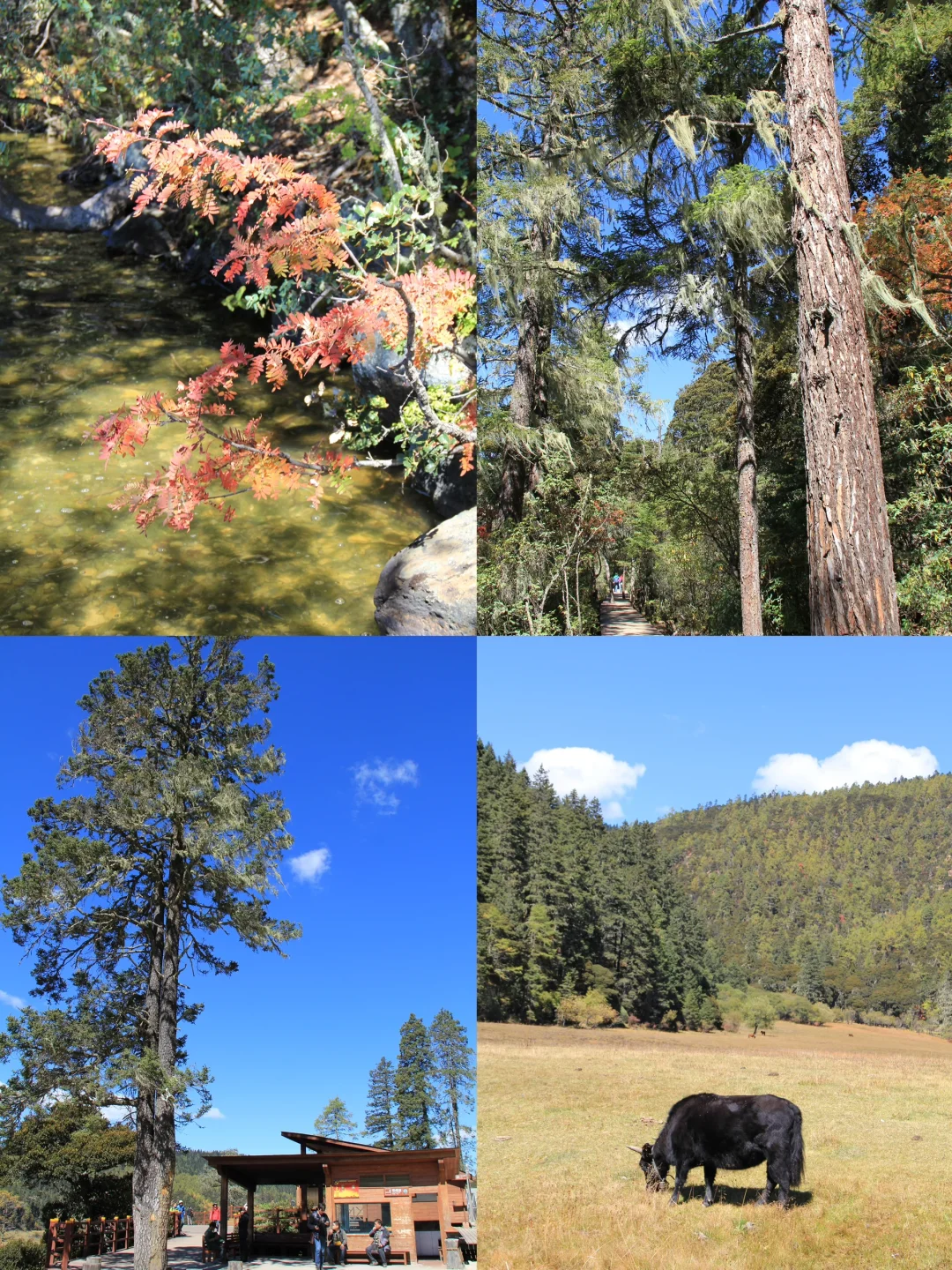 2️⃣普达措国家公园:秋天的普达措宛如一幅绚丽多彩的画卷。金黄的草甸如金色的地毯般铺展,五彩的树林似大自然的调色盘,湛蓝的天空与清澈的湖水交相辉映。漫步其中,尽情感受大自然的宁静与美丽,仿佛步入了梦幻之境。
