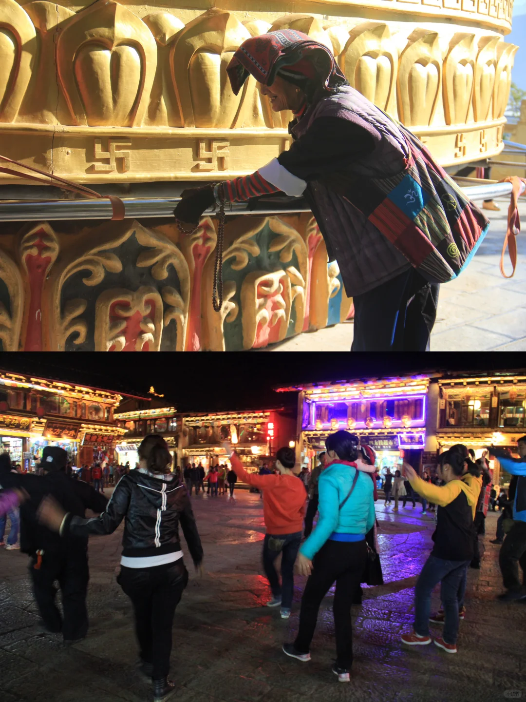 1️⃣ 独克宗古城:古老的石板路承载着岁月的痕迹,传统的藏式建筑散发着历史的韵味。夜晚的古城灯火辉煌,热闹非凡,仿佛穿越回了古老的时光。