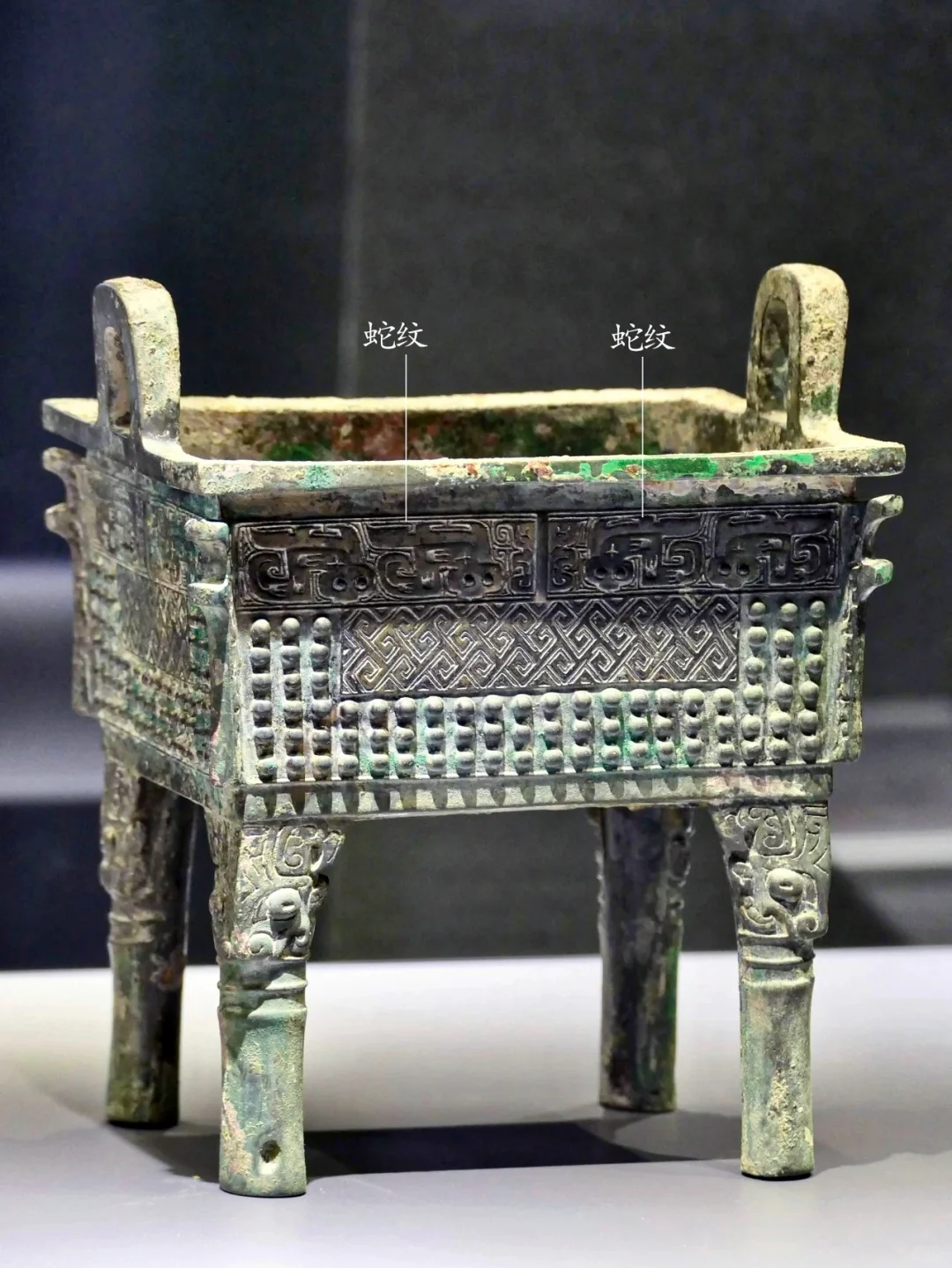 西周早期出现不少这个时期特有的纹饰,“卷尾探首”蛇纹是一种。