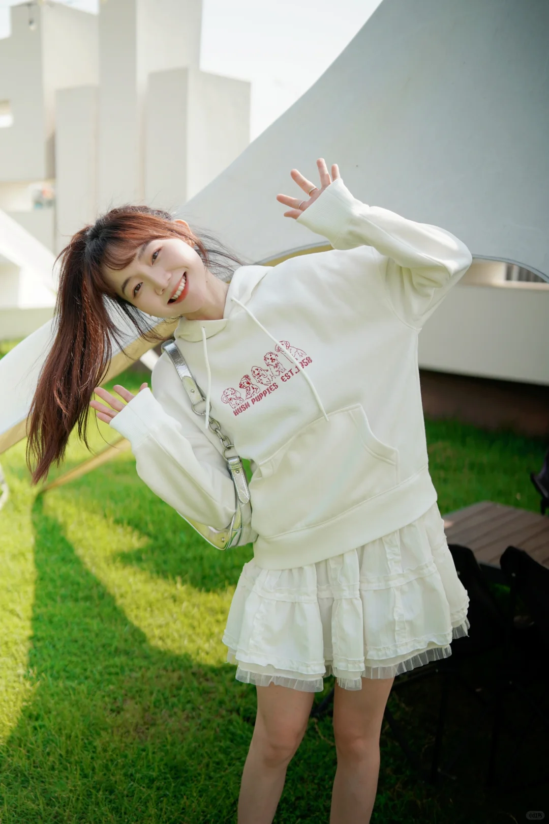 天气太太太好啦~🍂🌤 ¨̮ 实在憋不住要往外跑了 穿着我可爱的卫衣➕蛋糕裙出门拍美照咯🐶🎀 可爱的人当然要拍可爱的照啦 🎪😎