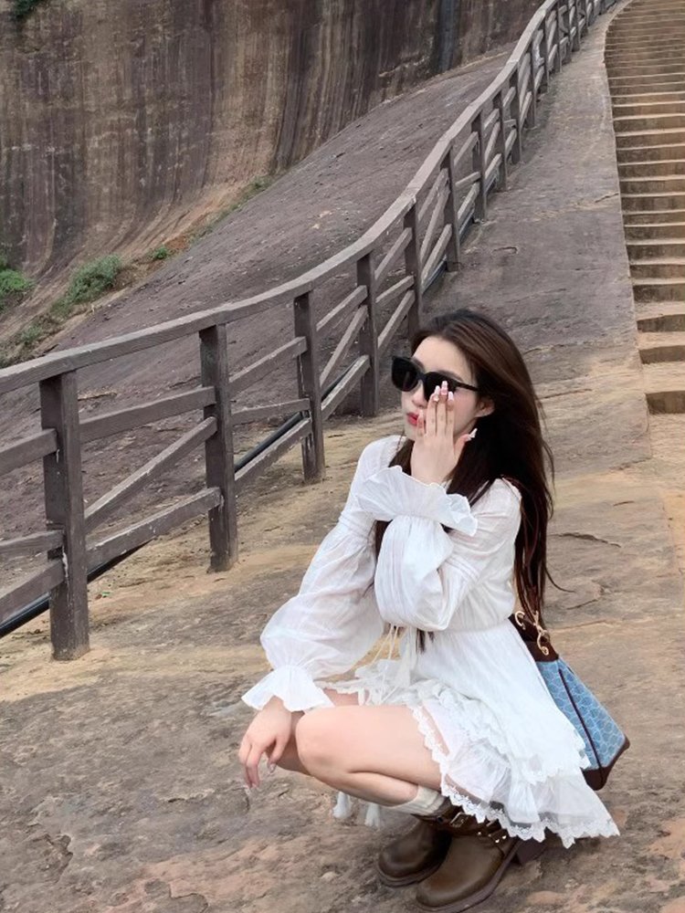 早秋法式初恋白色长袖衬衫连衣裙女