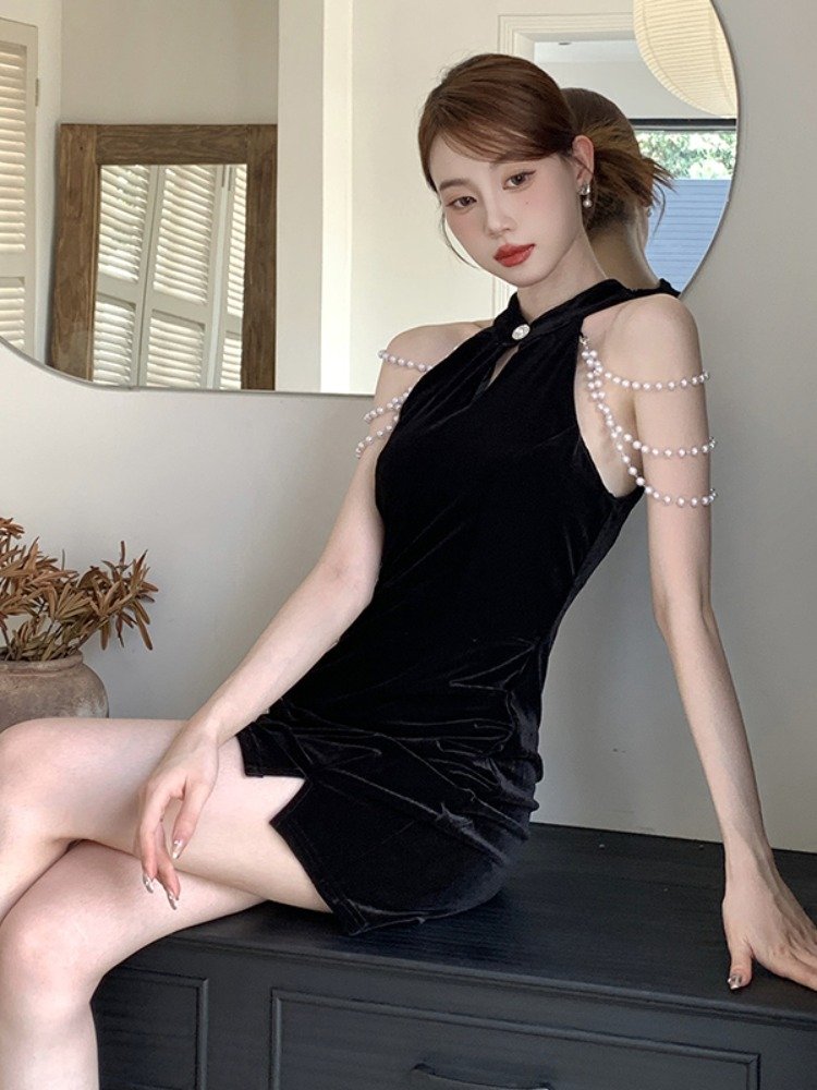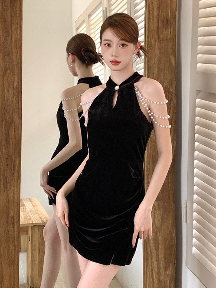 改良旗袍挂脖裙,古典韵味与现代感的交融,可惜,那份传统似乎淡了点。
