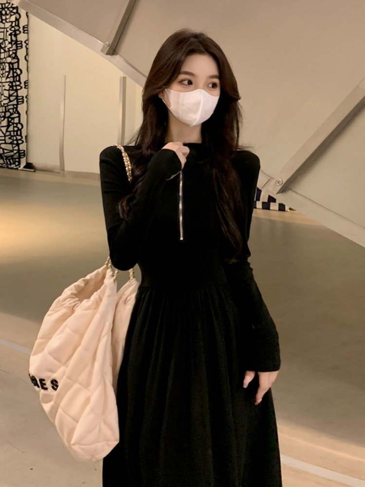 长袖针织裙,春秋保暖神器,搭个短外套,冬季内搭,四季都能秀优雅!