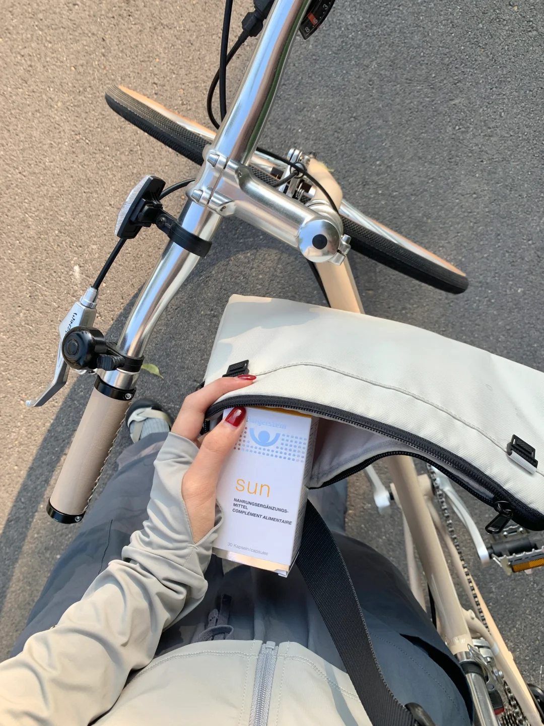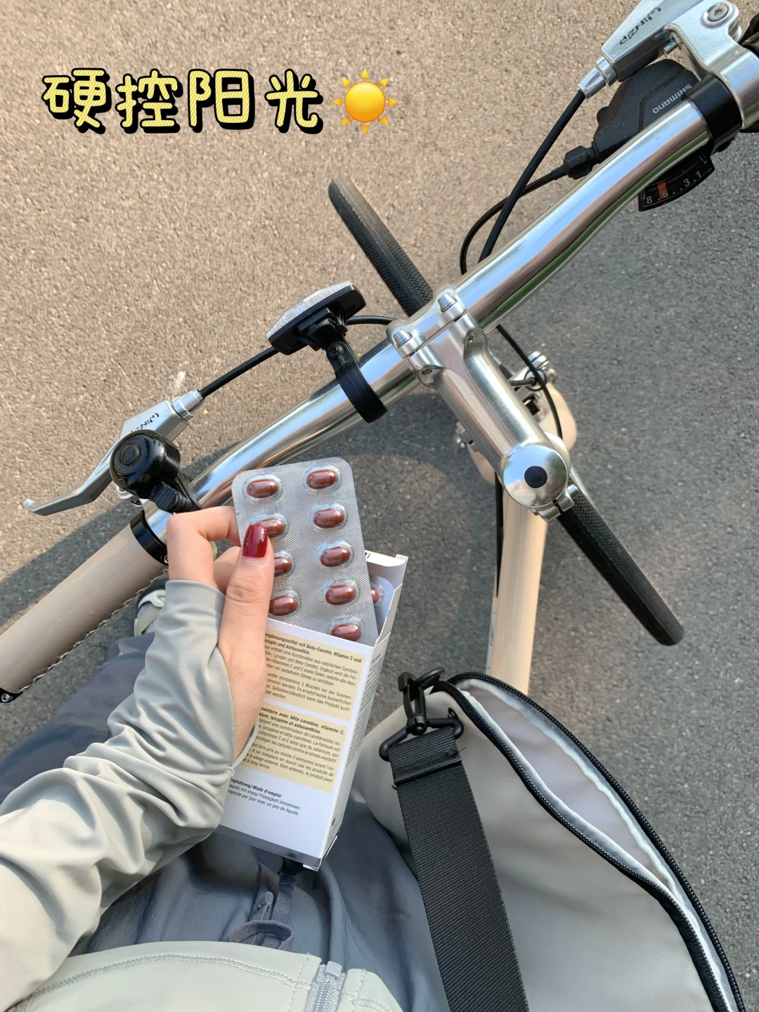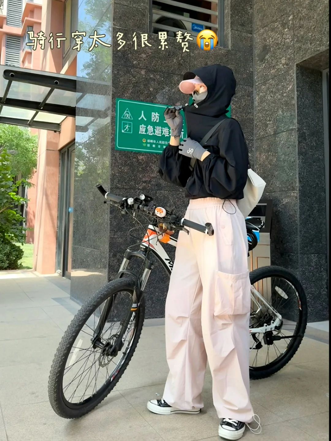 但是骑行时候真的很想只穿运动背心拍照~防晒衣、口罩一直穿脱就很麻烦!防晒霜涂抹起来也很麻烦。。(真的蛮懒的)