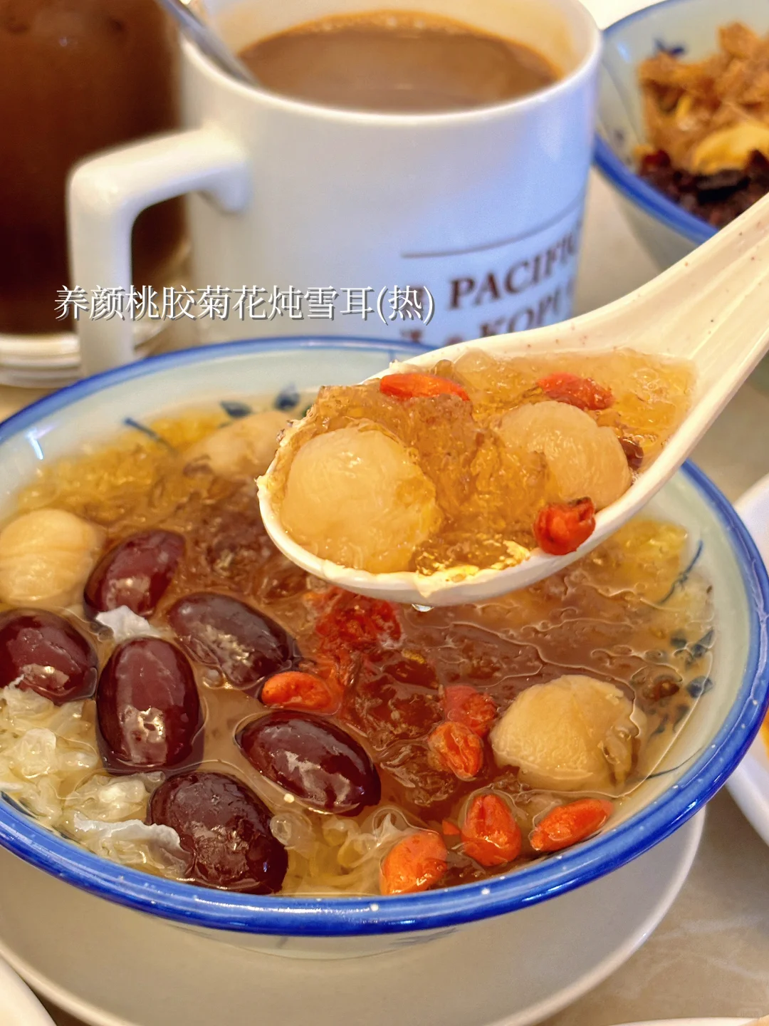 甜品点了桃胶菊花炖雪耳也很赞而且不会很甜!