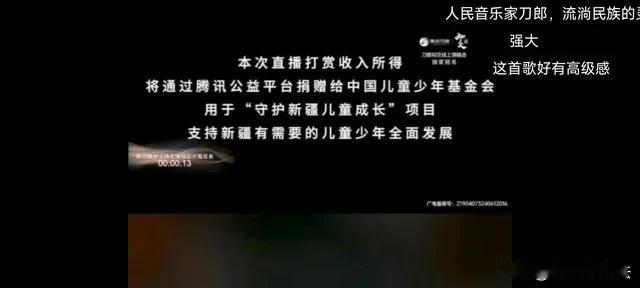 有人形容刀郎的线上演唱会:一个干净的人唱干净的歌,开了一个干净的演唱会。 刀郎醉心音乐创作,从不炒作,也很少回应争议,是个纯粹的,真正有艺术追求的创作型音乐人,这是个干净的人。 演唱会就是纯粹的唱歌,几乎没有互动,不讲客套话,也不讲废话,就是安安静静的唱歌,干干净净的唱歌。 演唱会免费,没有关闭打赏,但把打赏金额设置的很低,最少0.1元,最多也不能超过10元,这最大程度的避免了粉丝冲动消费,而且所有打赏金额全部捐给中国儿童基金会,这是一场不以盈利为目的的演唱会,干干净净。 这场演唱会不像演唱会,更像是一场“慈善义演”,更像是刀郎闲不住了出来唱唱歌,顺便做做公益的义举,所有环节的设置,体现了他对音乐和社会责任的执着与追求。