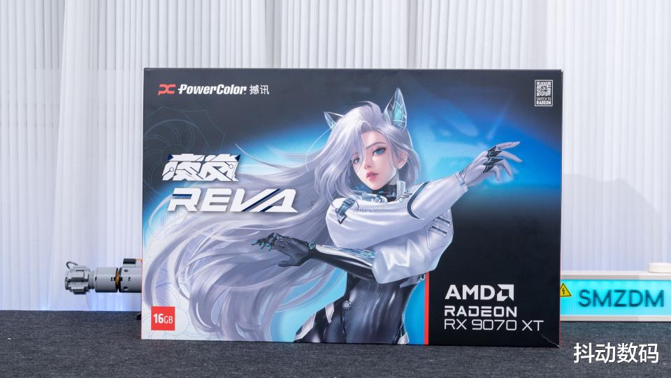 前面也提到了这次选择了一款二次元显卡,就是来自撼讯PowerColor带来的一款二次元主题显卡Radeon RX 9070 XT 「REVA夜岚」显卡,这也是撼讯品牌首款二次元主题显卡产品。包装方面撼讯打造的这个「REVA夜岚」的二次元形象也是真的好看。