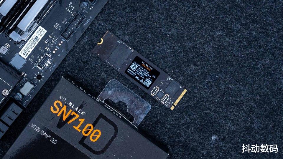装机测试的内存是闪迪 WD_BLACK SN7100 PCIe 4.0 1TB,包装还是熟悉的黑色点缀了醒目的中黄色突出产品型号、容量等重点信息。
