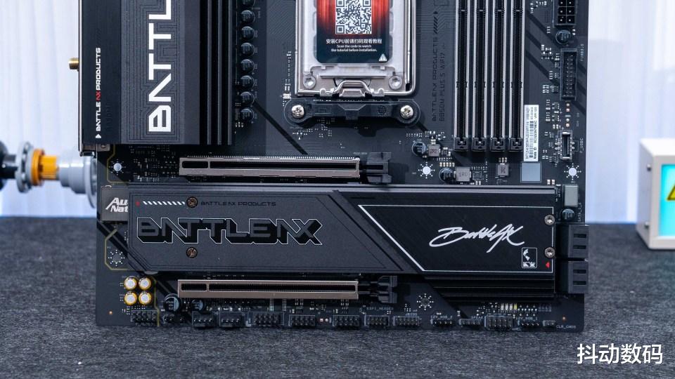 提供了两根PCIe 全尺寸插槽,也一样都做了金属加固设计。其中一个为PCIe 5.0 x16一个为PCIe 4.0 x4设计。