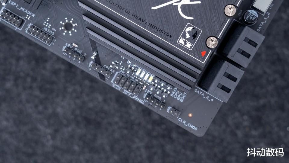 Debug LED灯设计在主板底部,此外这款主板还配置了2个5V ARGB和12V RGB插针接口。