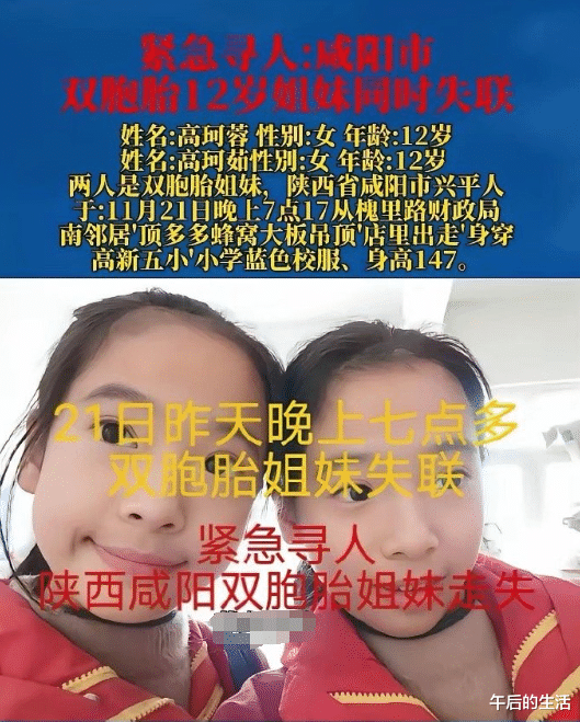 陕西12岁双胞胎走失40小时记:一场虚惊背后的教育反思 11月21日深夜,陕西咸阳一对12岁双胞胎姐妹的离家出走,牵动了整座城市的神经。这对因被父亲责备玩手机而赌气出走的姐妹,用40小时的“冒险”给无数家庭敲响了安全警钟。