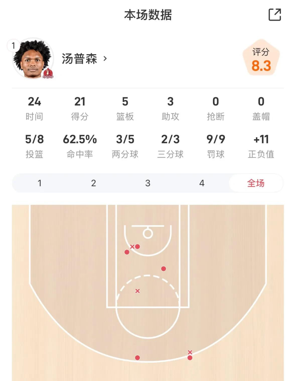 全面进化!阿门·汤普森21+5+3闪耀赛场 投射蜕变成火箭惊喜
