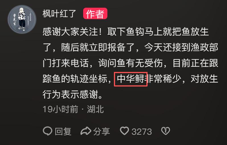 他经常钓鱼,认识很多种鱼,眼前这条可以说是“牢底坐穿”鱼了,野外种群极其稀少,是我国的国家一级保护鱼类。
