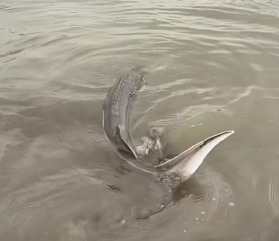 正如网友所说,江中绝大部分的这种鱼都是人工培育放生的,很多后背上都装有芯片,可以定位。