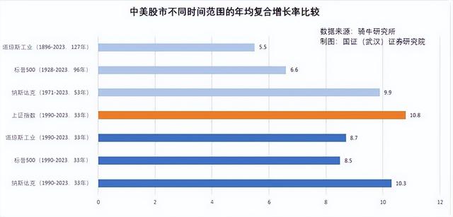 但是这年复合增长率却并不能代表一切。因为在这个复利投资里边,我们比较的是33年的上证和127年的道琼斯等指数。而且我们的这33年可和美国的127年不同。