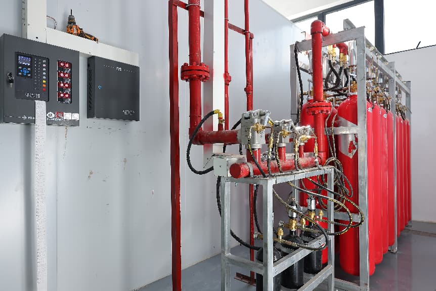 灭火剂存储模块:高压钢瓶储存CO₂或七氟丙烷,压力实时监测,低于90%自动预警。钢瓶间独立设置,温度保持在0-50℃,避免灭火剂失效。