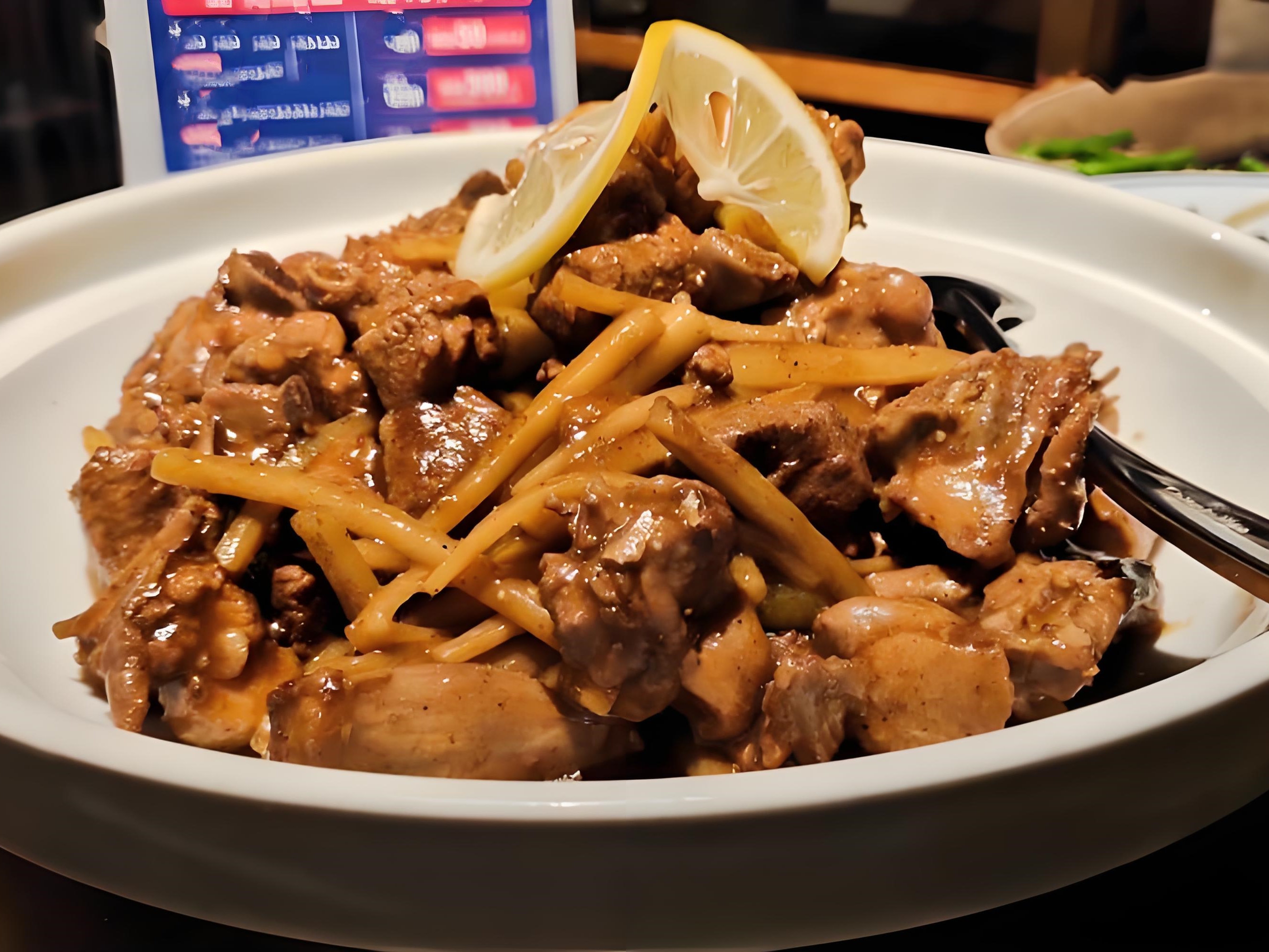 柠檬鸭外观冒着油汁、金黄诱人。夹一块带皮的鸭肉,齿尖先触到焦脆的鸭皮,接着酸汁在舌尖炸开,辣意顺着喉头往下溜,最后泛起柠檬皮的甘苦余韵。那股浓郁而冲的酸香,第一口感觉强烈,第二口就开始让人停不下筷子。鸭肉香脆有嚼劲,不软不腻不臊,酸辣风味与鸭肉鲜美相得益彰,是南宁人骨子里的乡愁。