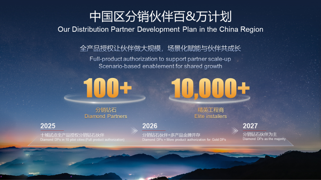 值得一提的是,会上华为还发布了面向中国分销伙伴的“百&万计划”,将从有能力、有意愿的分销金牌中发展100家钻石伙伴,从单产品授权扩展至全产品授权,帮助伙伴快速发展,做大规模;协同钻石与金牌伙伴发展10000家精英工程商,面向最终用户提供场景化方案及服务,使能工程商更高效服务用户。