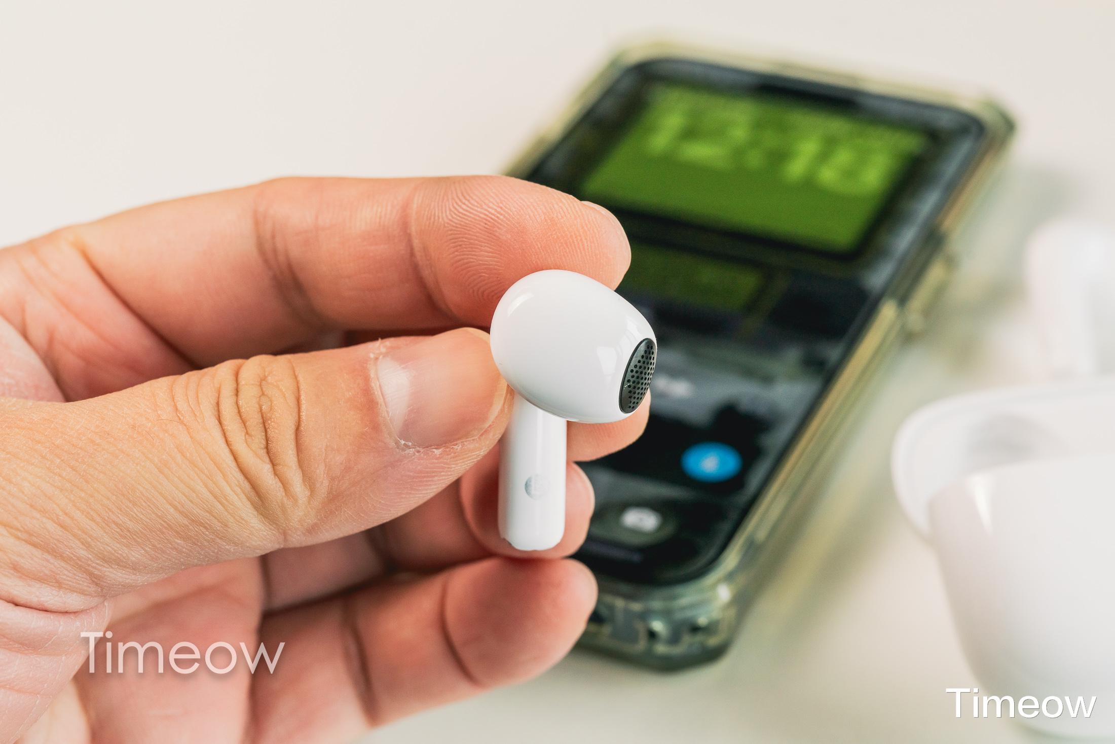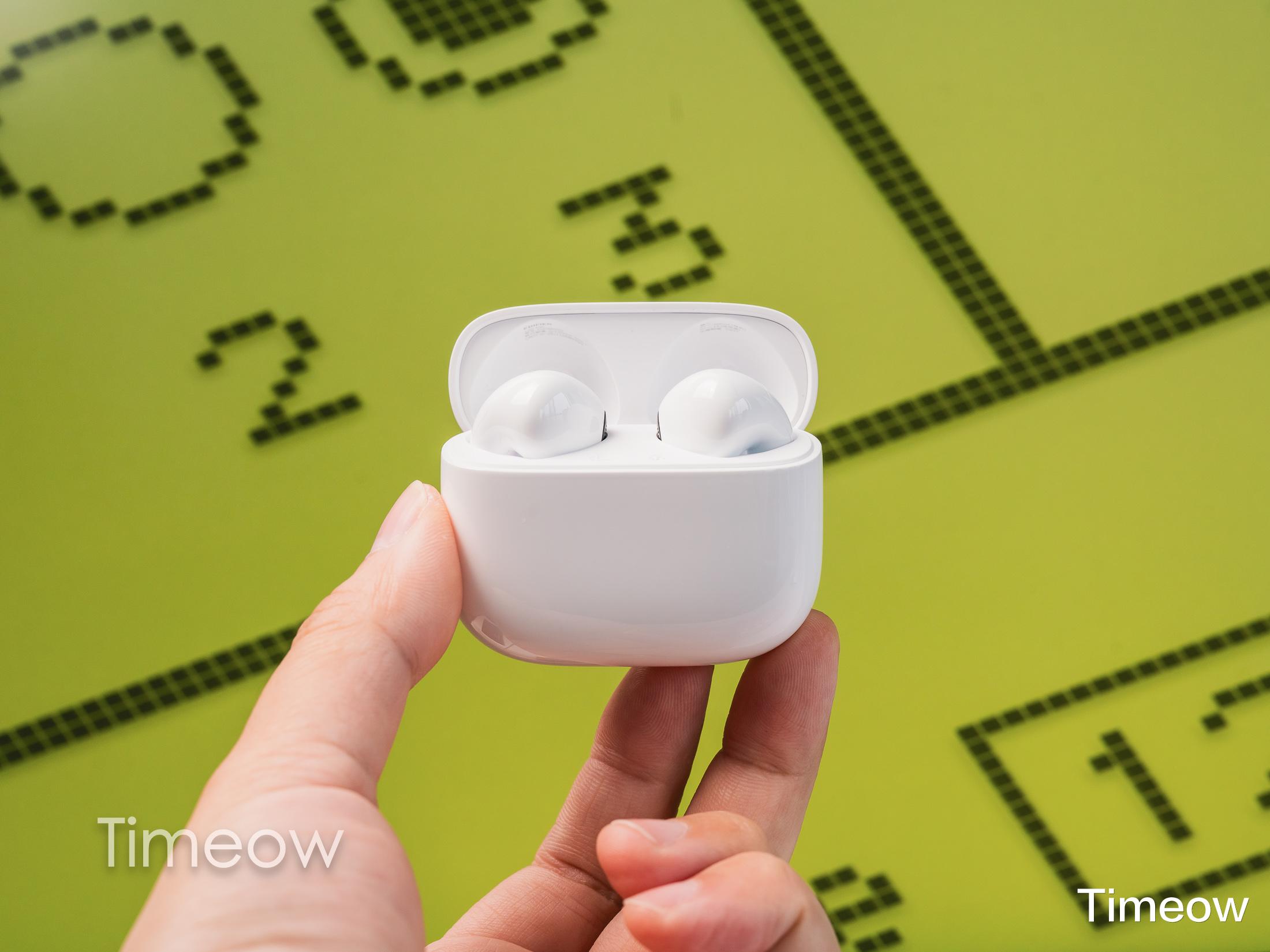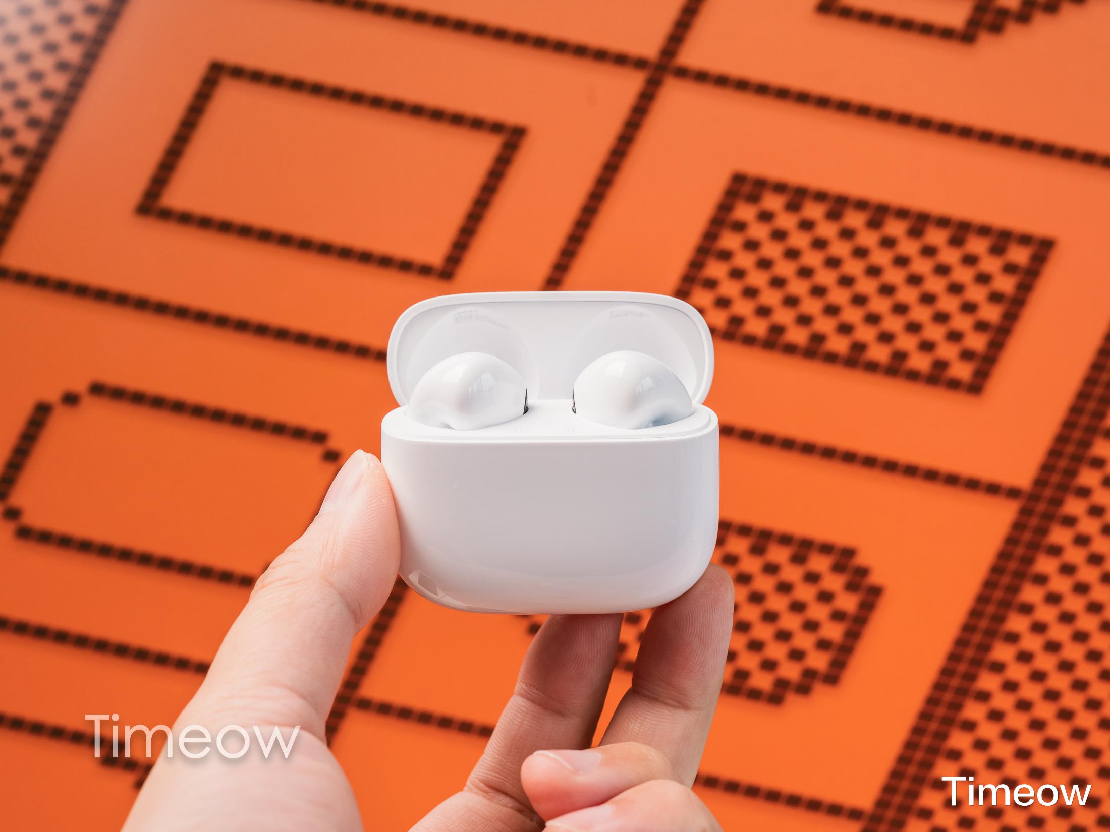 打开盖子后,耳机主机的线条很圆润,与耳机仓有着一样的设计语言,使用了两种质感的表面处理,融合的恰到好处,质感和颜值相当不俗。
