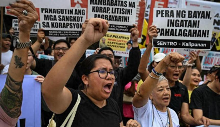2025年11月16日,菲律宾首都马尼拉,超过60万人涌上街头,举着标语,喊着口号,愤怒地抗议政府腐败。