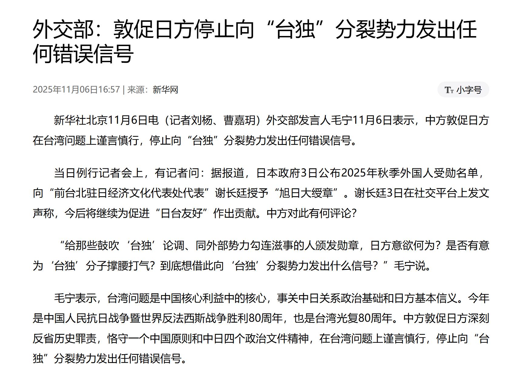 美欧都不敢碰的红线,高市内阁现在跳出来觉得自己可以碰一碰,证明如今的这群日本右翼,是真的不仅坏,而且还蠢。