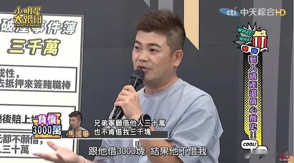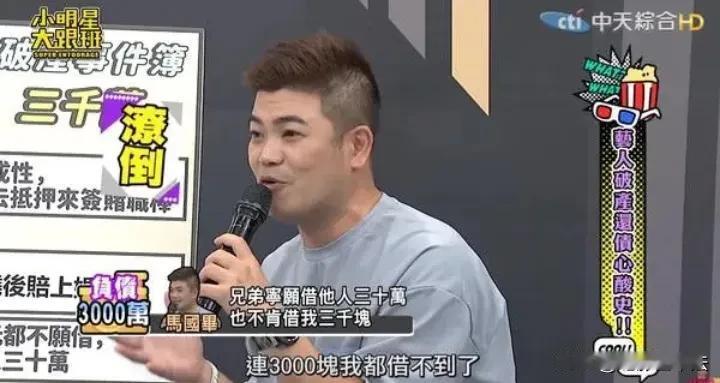 台湾男星赌球欠下千万债务,11年未还清! 9月2日,港媒报道,有网民拍到台湾男星马国毕在大街上当搬运工人,而从男星到搬运工,源于马国毕12年前迷上赌职业棒球。 11年前,2013年,马国毕因为赌球连本带利欠下5000万新台币的高利贷(约1200万港币,1100万人民币),欠下巨债后,马国毕翻然悔悟,痛定思痛之后积极还债。 为了还债,马什么都干,开出租车、直播带货、餐饮店当服务员,最近还被拍到当搬运工,帮人搬家具上楼。 消息传出后,有媒体采访马国毕,马国毕十分坦然,表示现在自己很珍惜每一天可以赚钱的机会,只要能合法赚钱,什么活他都愿意干。 马还说,真心希望所有人不再犯跟他一样的错误,采访最后他表示非常感谢一路上帮过他的贵人,也很感谢陌生人的加油。 根据报道,这12年马国毕已经还了4400万新台币(约1053万港币),目前仍欠600万新台币(约147万港币),按照这个速度推算,2025年马国毕就能把债务全部还清。 网友看后纷纷评论: 他是个有担当的人。 艺人好赚钱,要是普通人就完蛋了。 比贾布斯强,起码没赖账。 赌博欠债,可怜之人必有可恨之处。 加油!!! …… 马国毕,吴宗宪旗下艺人,目前因为欠债已经与老婆离婚,但他对记者透露,离婚不是为了转移财产逃避债务,只是不想连累家人,等还清了债务,就会重新把老婆追回来。