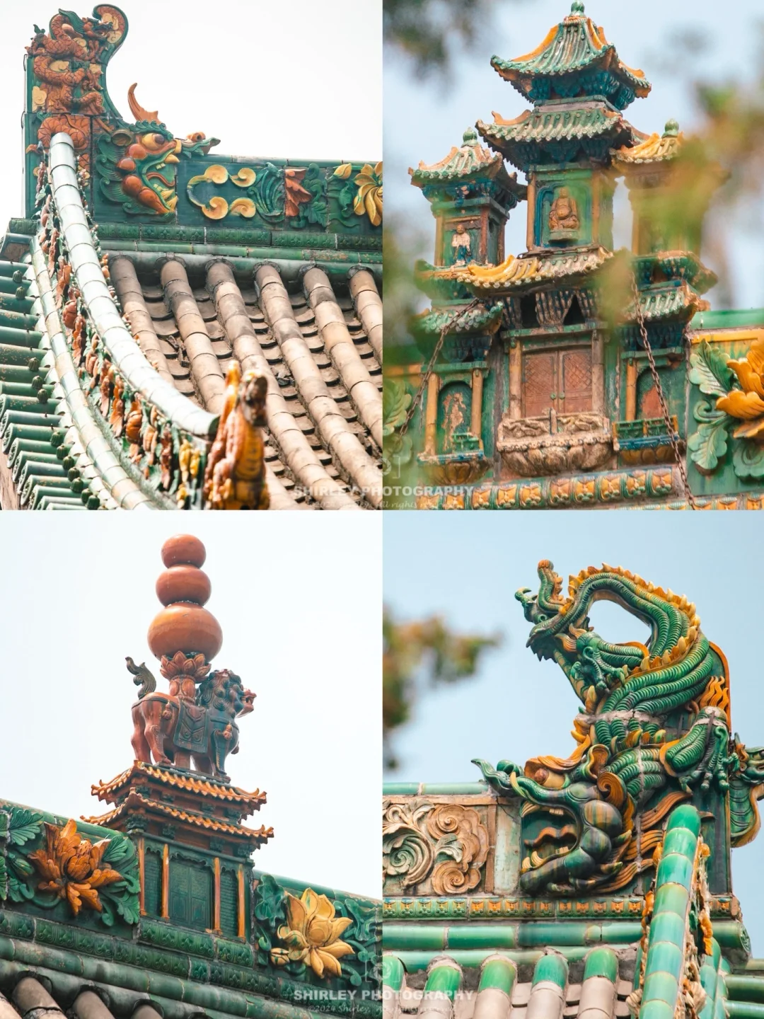彩塑无疑是双林寺的主角,很少有人会留意欣赏室外的院落,其实双林寺的建筑细节同样值得一观。尤其是正脊上的琉璃鸱吻,以及宝瓶型和楼阁型的两座琉璃脊刹,精美绝伦,水准在古建遍布的山西仍属前列。