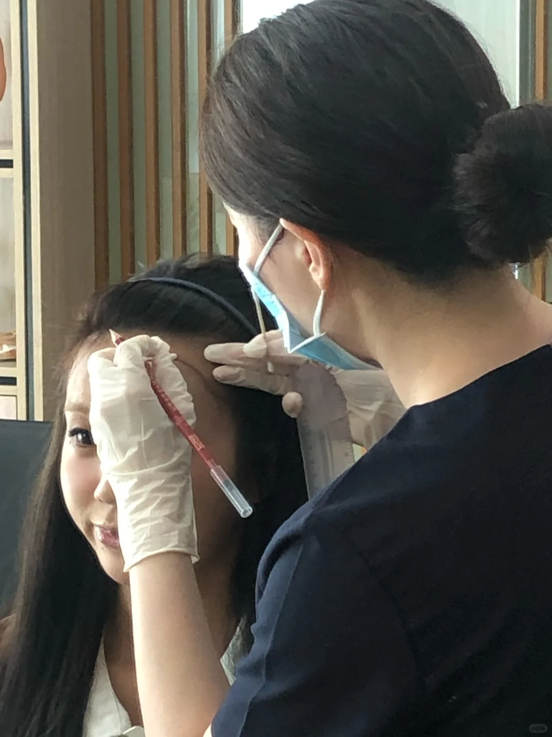 我的脸型比较适合圆圆的小花瓣一开始医生给我画了模拟发际线