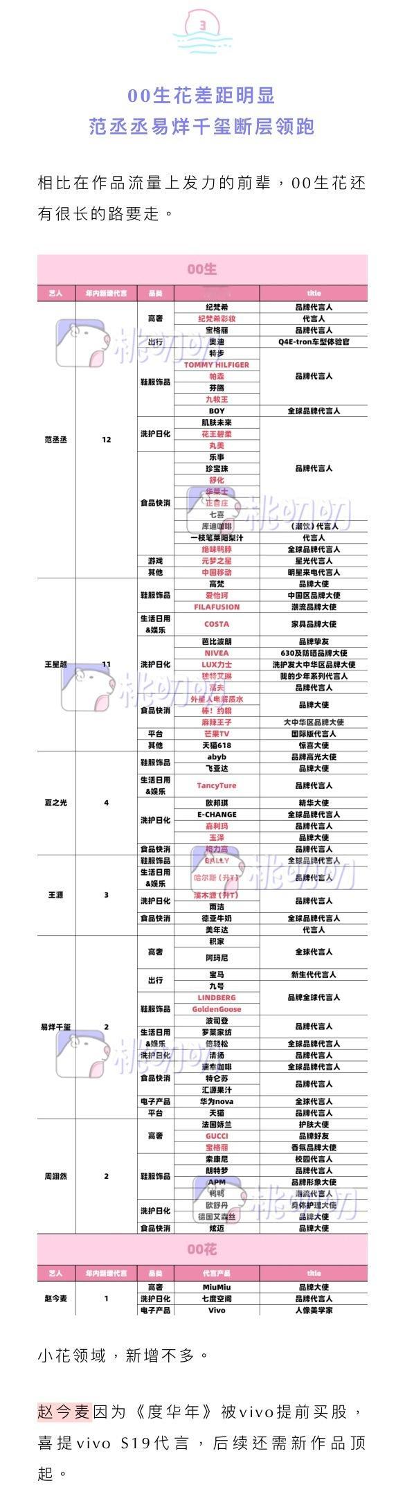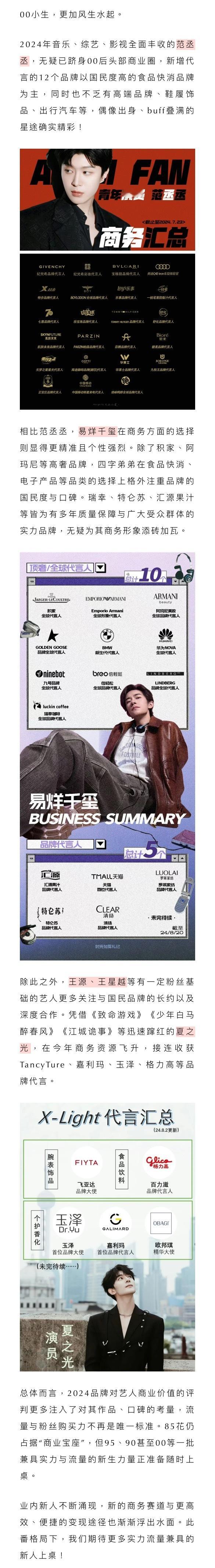 易烊千玺范丞丞领军00后,小花商务仍看未来作品质量。我们期待更多实力流量兼具的新人上桌!更多精彩请戳👉
