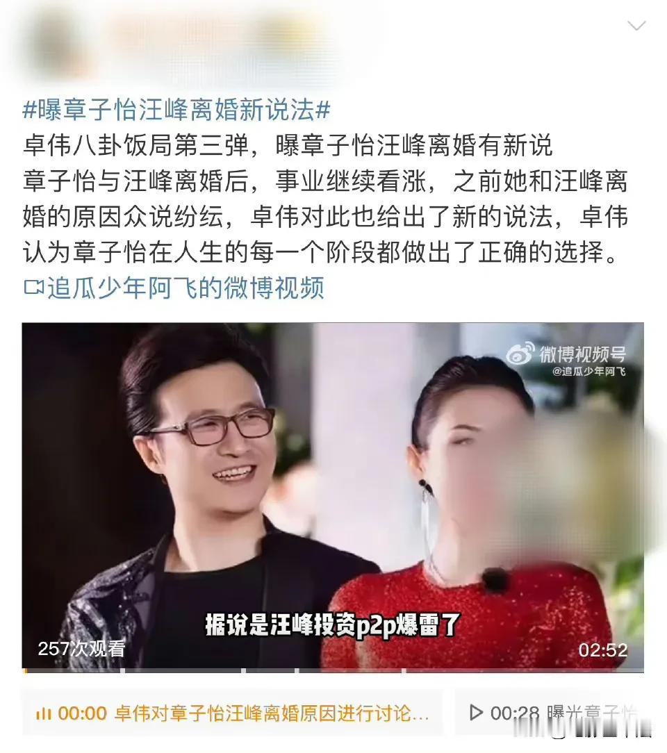 今天最炸裂的瓜,是章子怡和汪峰的! 9月3日,继陈晓陈妍希分居一年多连儿子都不见一面后,卓伟再度曝出一个更重量级的瓜,这次是汪峰和章子怡离婚的真实原因。 卓伟说,两人之所以离婚,不是因为汪峰投资P2P爆雷,而是因为汪峰不但出轨其他女生,而且还被章子怡哥哥捉住了。 网友们的评论让人十分意外,全是相信卓伟的: 虽然我对国际章印象一般,但对结3次婚的男人来说,能管住下半身的几率为0。 他不出我感觉才是新奇。 这么多年这么多瓜,已经对内娱出g这种瓜无感了。 他好像不会一个人睡觉。 看她那么爱孩子,肯定很珍惜家庭,原因一点都不意外。 最释怀的应该是撒贝宁吧!章子怡不选撒这种痴情种去选一个结婚离婚几次的人,找哪里说理去? …… 卓伟越来越无聊了,先是网友晒图证明陈晓今年看过孩子,他所谓的一年没看孩子纯粹是编造谣言,现在又曝光汪峰离婚真实原因,但是都只是靠嘴说,没有任何依据,就完全让网友自己去猜。 所以很难相信现在的卓伟,爆料的真实性,假设是真,请问卓伟怎么知道的,这么私密的事章子怡汪峰肯定不会说,章子怡哥哥更不会说,那么卓伟是怎么知道的? 所以,只有两种可能,一种就是这消息卓伟根据小道消息编的,另一种就是和章子怡汪峰身边非常亲近的人亲自向卓伟爆的料,目的不言自明。 不管真相如何,卓伟有一句话是说对了,那就是章子怡在人生每一个阶段都做出了正确的选择。 爱自己才是终身浪漫的开始,章子怡做的太对了!