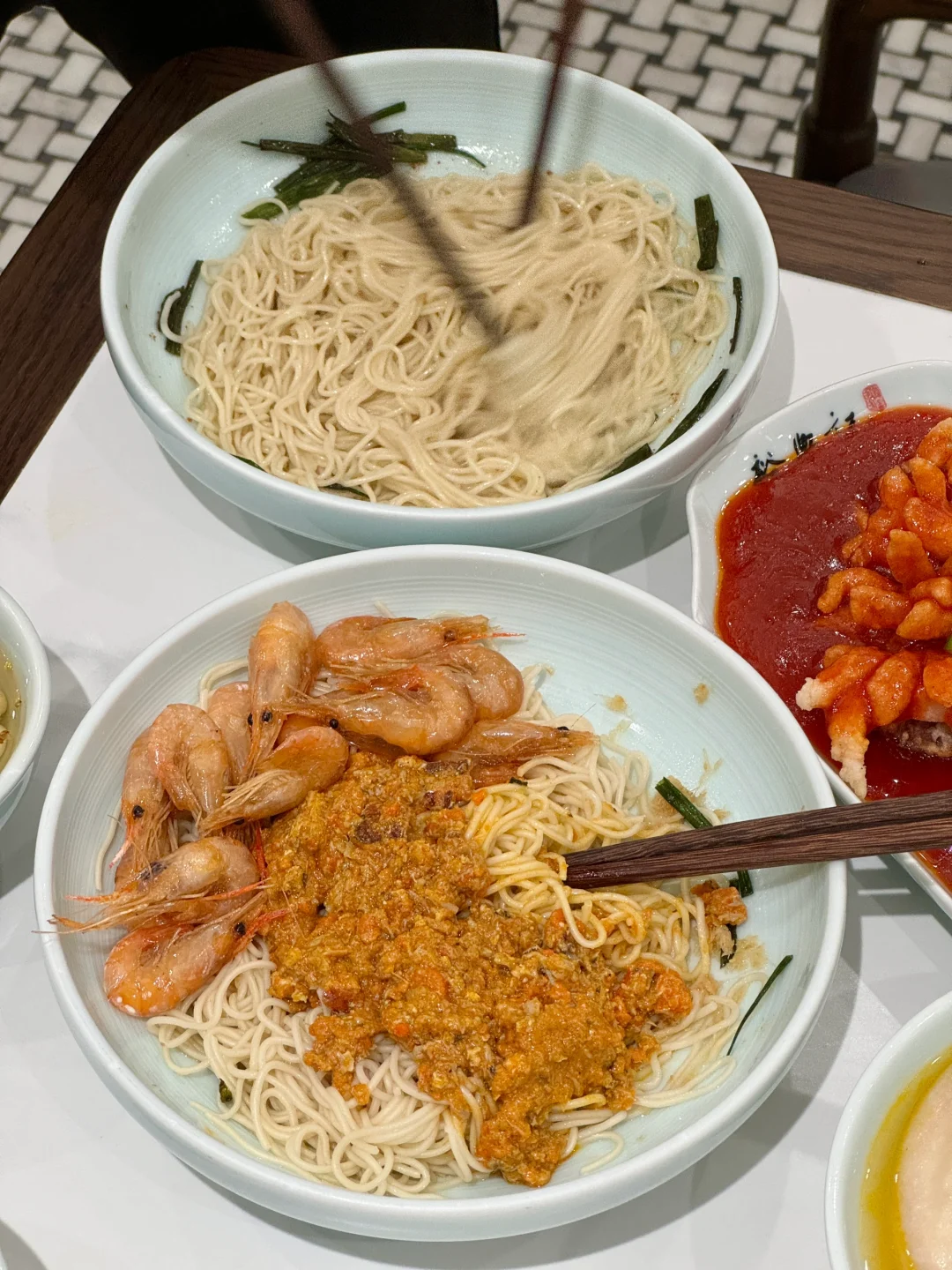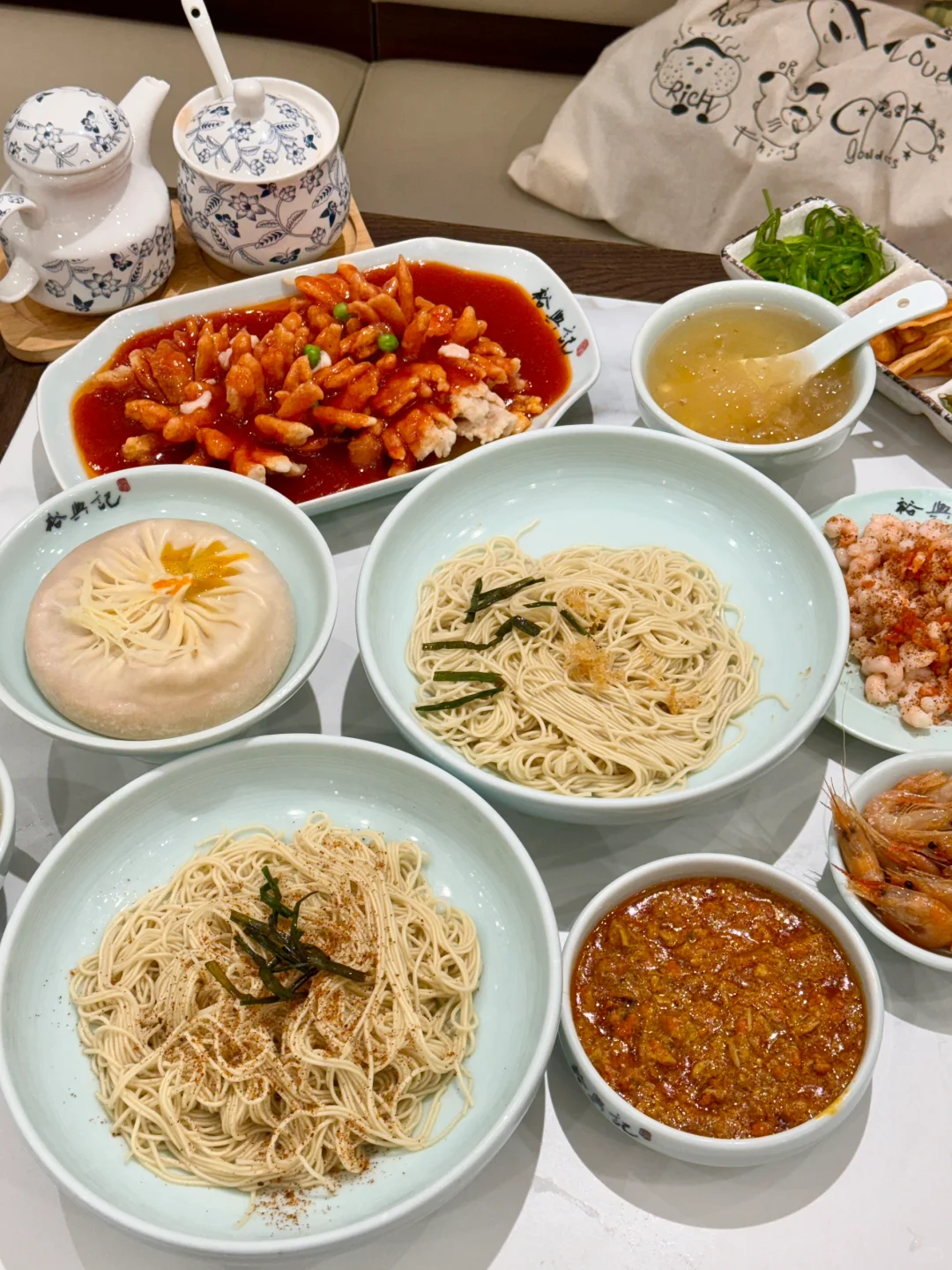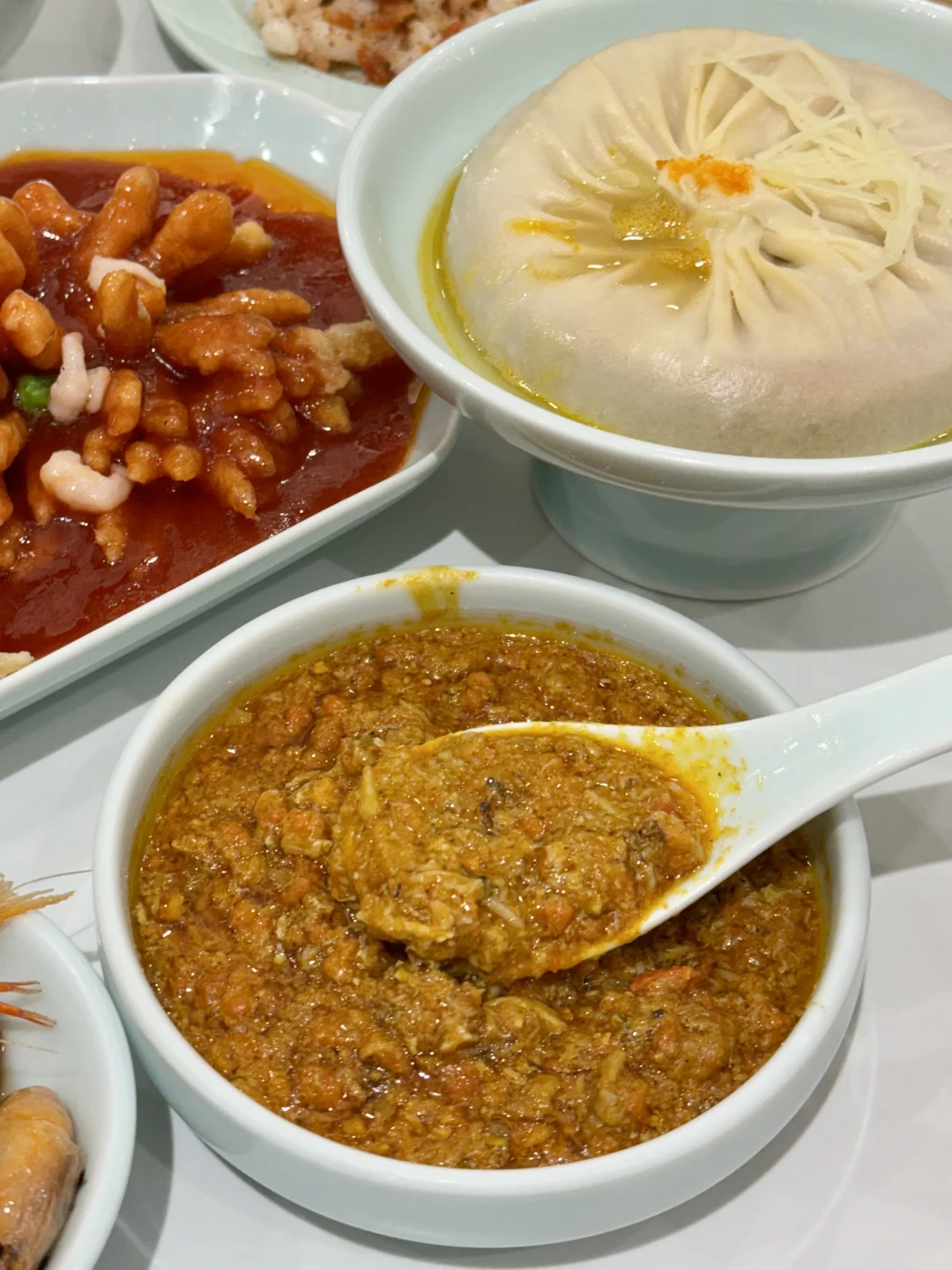 就在外滩边上的老字号蟹黄面!吃完还能去外滩city一下~ 蟹黄浇头足足有八只螃蟹🦀!再加上蟹醋buff加成一口下去太满足了🤤! 还有敲大号的蟹黄大汤包!记得用吸管嗦着吃!蟹黄汤汁zei爽~