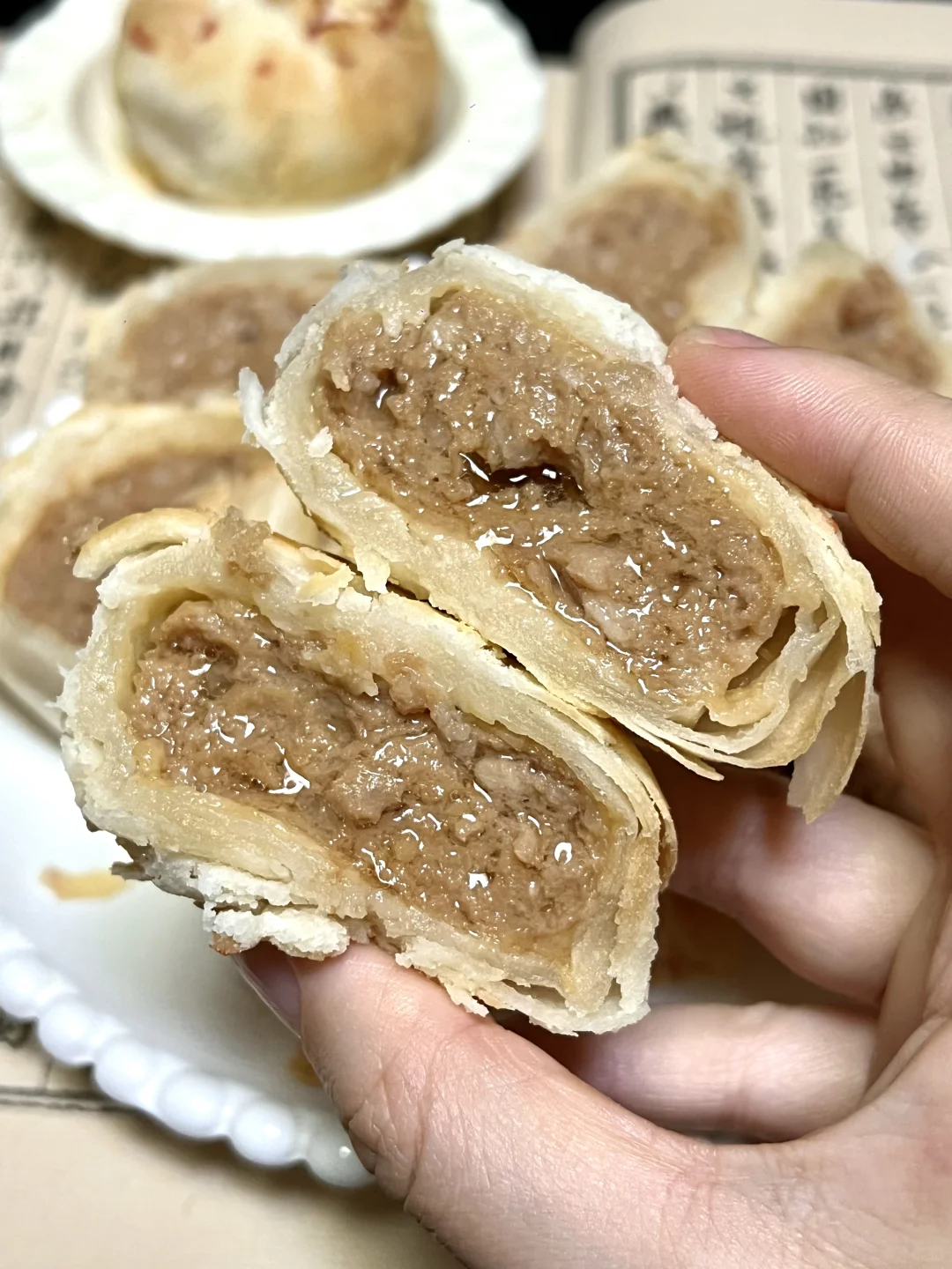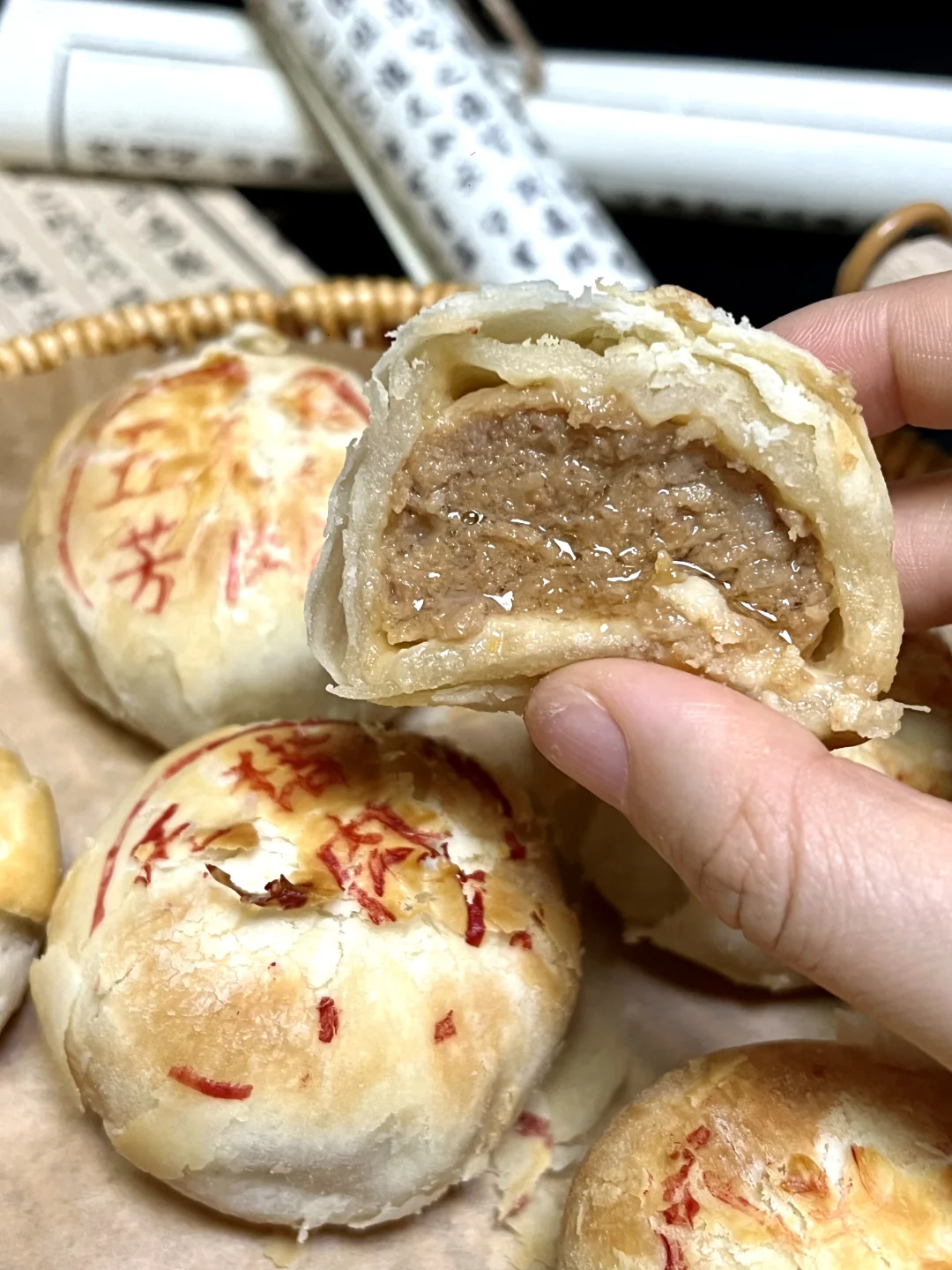 哭了,从来没这么期待吃月饼过🥮 就是五芳斋这款现烤猪肉月饼 🔥在家稍微加热一下,直接就能吃 跟我在线下现买的没差,不输现烤月饼!! 饼皮酥到掉渣,轻咬一口就碎 饼皮和馅料1:1的用料比例,超扎实 鲜肉内馅特别大块,口口爆汁!! 答应我!一定要趁热吃,烫嘴才好吃! 趁着中秋多囤一些🥰随时现吃现烤