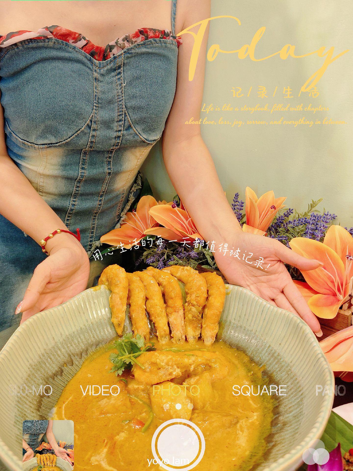 一秒穿越泰兰德🥂假装在度假🏖。不是泰国去不起,而是去猎德新开的芭芭厘更有性价比✌️ 我这身度假风打扮,跟这里的装修简直是绝配!这里的设计太有泰味了,明艳的橙色还有度假的感觉了,拍照chao出片! 菜品也很诱人! 🥢泰式鲷鱼刺身🐟 鲷鱼刺身很爽口,搭配上一绿一红的青柠汁和特调汁,很好吃,很有层次感。 🥢咖喱大虾 泰式咖喱🌶️--,奶香味很浓,大虾🦐很新鲜,我们连配菜都吃光光了。 猎德这一带夜色很美很美,来广州的游客记得去打卡哟💕