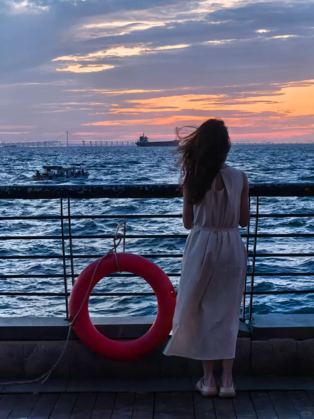 景色无需多言,今天晚上海边有点凉了。